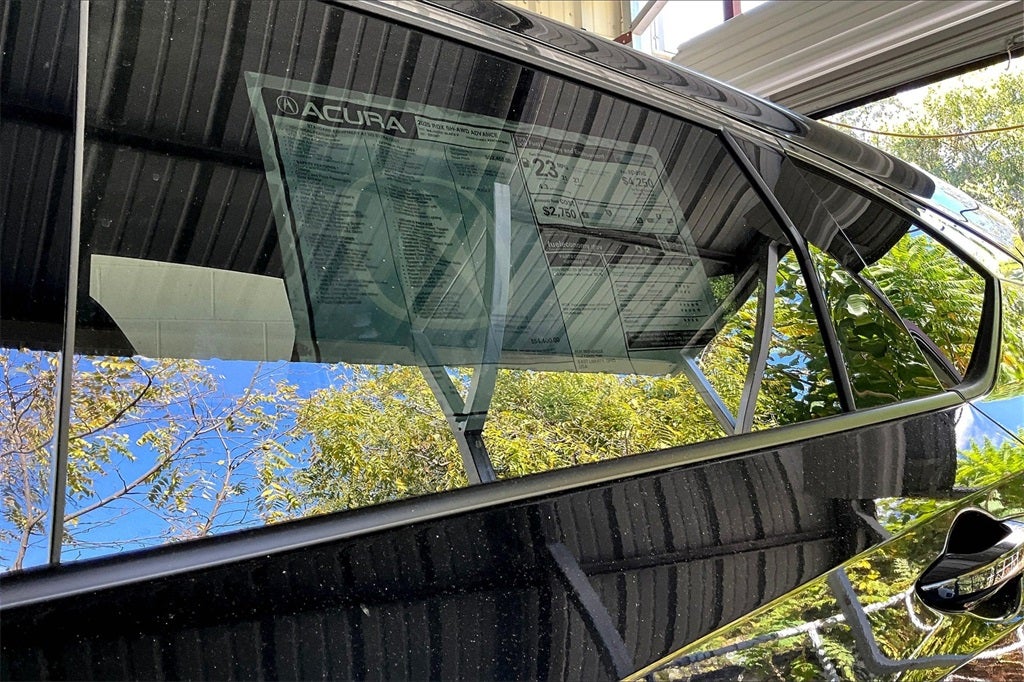 16 Speakers, 4-Wheel Disc Brakes, ABS brakes, Adaptive suspension, Air Conditioning, Alloy wheels, AM/FM radio: SiriusXM, Apple CarPlay/Android Auto, Auto High-beam Headlights, Auto-dimming Rear-View mirror, Automatic temperature control, Brake assist, Bumpers: body-color, Compass, Delay-off headlights, Driver door bin, Driver vanity mirror, Dual front impact airbags, Dual front side impact airbags, Electronic Stability Control, Emergency communication system: AcuraLink, Exterior Parking Camera Rear, Four wheel independent suspension, Front anti-roll bar, Front Bucket Seats, Front Center Armrest, Front dual zone A/C, Front fog lights, Front reading lights, Fully automatic headlights, Garage door transmitter: HomeLink, Genuine wood dashboard insert, Genuine wood door panel insert, Heads-Up Display, Heated & Ventilated Front Sport Seats, Heated door mirrors, Heated front seats, Heated rear seats, Heated steering wheel, Illuminated entry, Knee airbag, Lane departure: Lane Keeping Assist System (LKAS) active, Low tire pressure warning, Memory seat, Navigation system: Acura Navigation System with 3D View, Occupant sensing airbag, Outside temperature display, Overhead airbag, Overhead console, Panic alarm, Passenger door bin, Passenger vanity mirror, Perforated Milano Premium Leather-Trimmed Interior, Power door mirrors, Power driver seat, Power Liftgate, Power moonroof, Power passenger seat, Power steering, Power windows, Radio data system, Radio: ELS Studio 3D Premium Audio System, Rain sensing wipers, Rear anti-roll bar, Rear reading lights, Rear seat center armrest, Rear window defroster, Rear window wiper, Remote keyless entry, Security system, Speed control, Speed-sensing steering, Split folding rear seat, Spoiler, Steering wheel mounted audio controls, Tachometer, Telescoping steering wheel, Tilt steering wheel, Traction control, Trip computer, Turn signal indicator mirrors, Variably intermittent wipers, Ventilated front seats, and Wheels: 19 x 8.0J Berlina Black Machine-Finished.