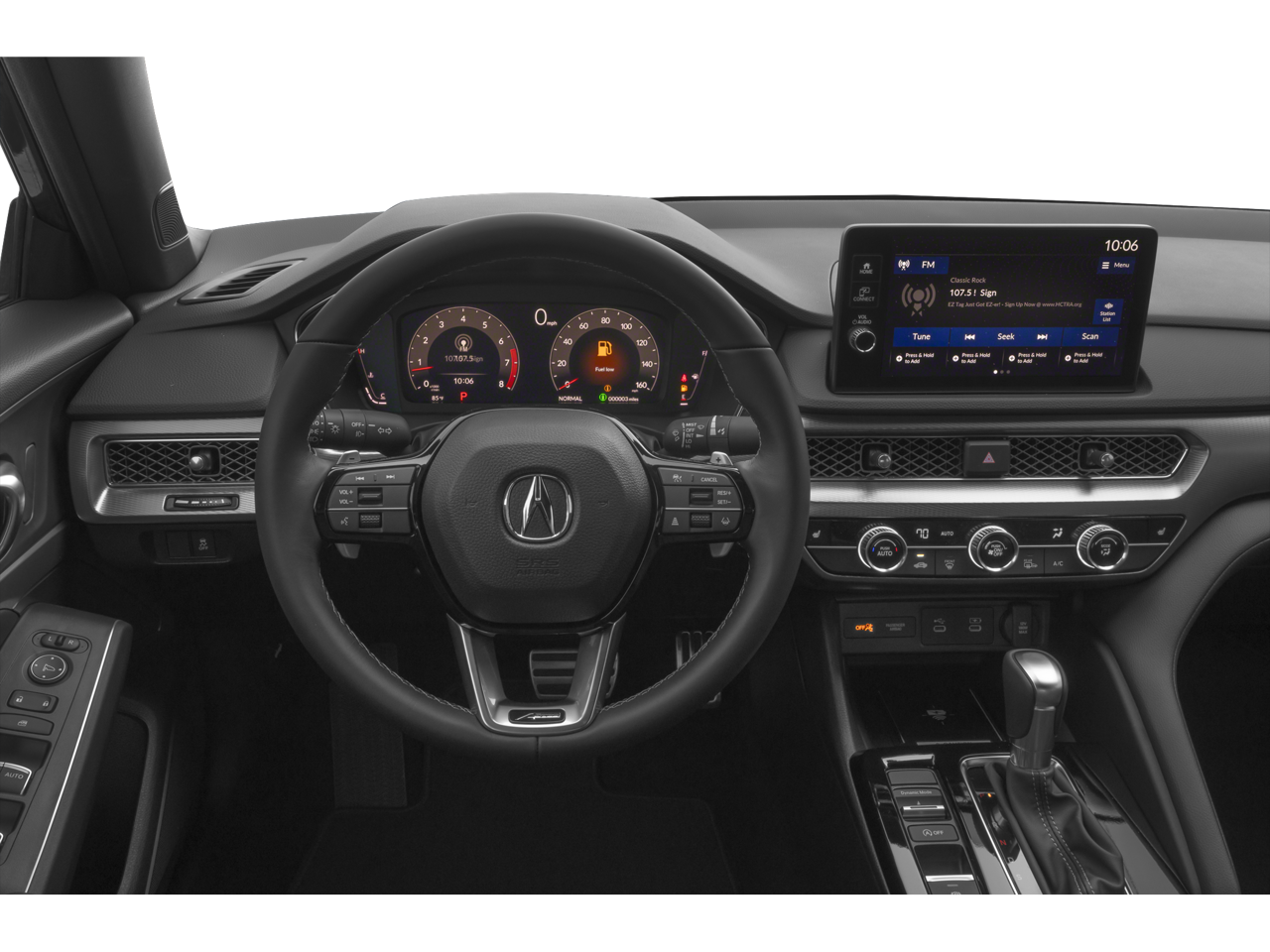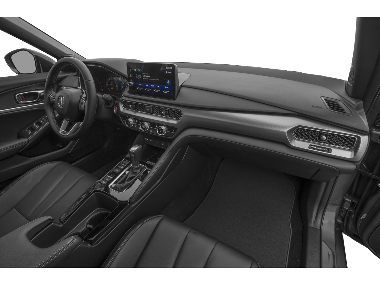 18 Aluminum Alloy Wheels, 4-Wheel Disc Brakes, 8 Speakers, ABS brakes, Air Conditioning, Alloy wheels, AM/FM radio, Apple CarPlay/Android Auto, Auto High-beam Headlights, Auto-dimming Rear-View mirror, Automatic temperature control, Brake assist, Bumpers: body-color, Compass, Delay-off headlights, Driver door bin, Driver vanity mirror, Dual front impact airbags, Dual front side impact airbags, Electronic Stability Control, Four wheel independent suspension, Front anti-roll bar, Front Bucket Seats, Front Center Armrest, Front dual zone A/C, Front fog lights, Front reading lights, Fully automatic headlights, Heated door mirrors, Heated Front Bucket Seats, Heated front seats, Illuminated entry, Knee airbag, Lane departure: Lane Keeping Assist System (LKAS) active, Leather Shift Knob, Leather steering wheel, Leatherette-Trimmed Seating Surfaces, Low tire pressure warning, Occupant sensing airbag, Outside temperature display, Overhead airbag, Overhead console, Panic alarm, Passenger door bin, Passenger vanity mirror, Power door mirrors, Power driver seat, Power moonroof, Power steering, Power windows, Radio data system, Radio: Acura Premium Audio System, Rear anti-roll bar, Rear seat center armrest, Rear side impact airbag, Rear window defroster, Remote keyless entry, Security system, Speed control, Speed-sensing steering, Speed-Sensitive Wipers, Split folding rear seat, Spoiler, Steering wheel mounted audio controls, Tachometer, Telescoping steering wheel, Tilt steering wheel, Traction control, Trip computer, and Variably intermittent wipers.