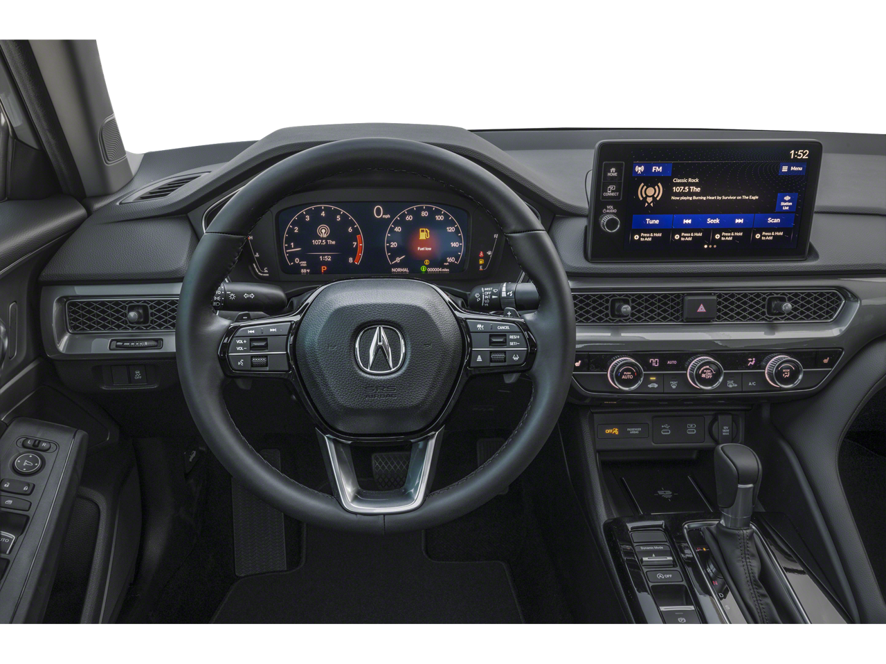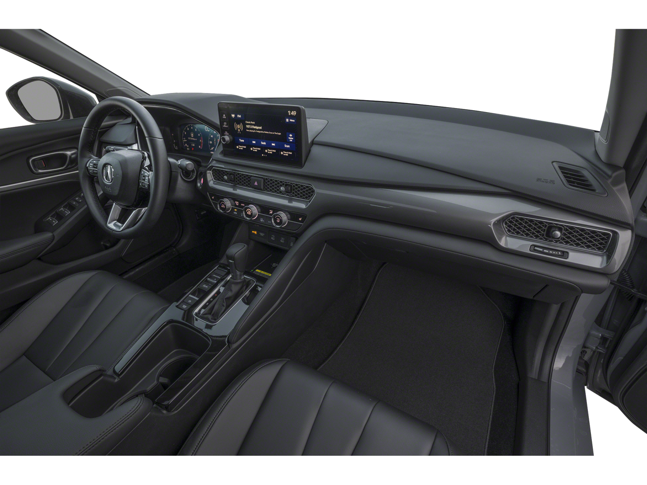 17 Aluminum Alloy Wheels, 4-Wheel Disc Brakes, 8 Speakers, ABS brakes, Air Conditioning, Alloy wheels, AM/FM radio, Apple CarPlay/Android Auto, Auto High-beam Headlights, Auto-dimming Rear-View mirror, Automatic temperature control, Brake assist, Bumpers: body-color, Compass, Delay-off headlights, Driver door bin, Driver vanity mirror, Dual front impact airbags, Dual front side impact airbags, Electronic Stability Control, Four wheel independent suspension, Front anti-roll bar, Front Bucket Seats, Front Center Armrest, Front dual zone A/C, Front reading lights, Fully automatic headlights, Heated door mirrors, Heated Front Bucket Seats, Heated front seats, Illuminated entry, Knee airbag, Lane departure: Lane Keeping Assist System (LKAS) active, Leather Shift Knob, Leather steering wheel, Leatherette-Trimmed Seating Surfaces, Low tire pressure warning, Occupant sensing airbag, Outside temperature display, Overhead airbag, Overhead console, Panic alarm, Passenger door bin, Passenger vanity mirror, Power door mirrors, Power driver seat, Power moonroof, Power steering, Power windows, Radio data system, Radio: Acura Premium Audio System, Rear anti-roll bar, Rear seat center armrest, Rear side impact airbag, Rear window defroster, Remote keyless entry, Security system, Speed control, Speed-sensing steering, Speed-Sensitive Wipers, Split folding rear seat, Steering wheel mounted audio controls, Tachometer, Telescoping steering wheel, Tilt steering wheel, Traction control, Trip computer, and Variably intermittent wipers.