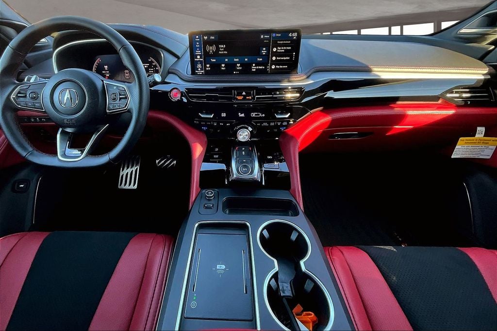 19 Speakers, 3rd row seats: split-bench, 4-Wheel Disc Brakes, ABS brakes, Air Conditioning, Alloy wheels, AM/FM radio, Anti-whiplash front head restraints, Apple CarPlay/Android Auto, Audio memory, Auto High-beam Headlights, Auto tilt-away steering wheel, Auto-dimming Rear-View mirror, Automatic temperature control, Brake assist, Bumpers: body-color, Compass, Delay-off headlights, Driver door bin, Driver vanity mirror, Dual front impact airbags, Dual front side impact airbags, Electronic Stability Control, Emergency communication system: AcuraLink, Exterior Parking Camera Rear, Four wheel independent suspension, Front anti-roll bar, Front Bucket Seats, Front Center Armrest, Front dual zone A/C, Front fog lights, Front reading lights, Fully automatic headlights, Garage door transmitter: HomeLink, Heated and Ventilated Front Sport Seats, Heated door mirrors, Heated front seats, HVAC memory, Illuminated entry, Knee airbag, Lane departure: Lane Keeping Assist System (LKAS) active, Leather steering wheel, Low tire pressure warning, Memory seat, Navigation system: Google built-in (3-Years Unlimited Data Plan for In-Vehicle Apps), Occupant sensing airbag, Outside temperature display, Overhead airbag, Overhead console, Panic alarm, Passenger door bin, Passenger vanity mirror, Perforated Premium Milano Leather and Ultrasuede Seats, Power door mirrors, Power driver seat, Power Liftgate, Power moonroof, Power passenger seat, Power steering, Power windows, Premium audio system: Acura/ELS Studio 3D, Radio data system, Radio: Bang & Olufsen Premium Audio System, Rain sensing wipers, Rear air conditioning, Rear anti-roll bar, Rear reading lights, Rear seat center armrest, Rear window defroster, Rear window wiper, Remote keyless entry, Security system, Speed control, Speed-sensing steering, Speed-Sensitive Wipers, Split folding rear seat, Spoiler, Sport steering wheel, Steering wheel memory, Steering wheel mounted audio controls, Tachometer, Telescoping steering wheel, Tilt steering wheel, Traction control, Trip computer, Turn signal indicator mirrors, Variably intermittent wipers, Ventilated front seats, and Wheels: 20 x 9J Aluminum Alloy.