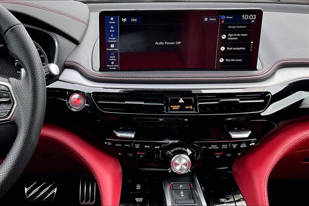 19 Speakers, 3rd row seats: split-bench, 4-Wheel Disc Brakes, ABS brakes, Air Conditioning, Alloy wheels, AM/FM radio, Anti-whiplash front head restraints, Apple CarPlay/Android Auto, Audio memory, Auto High-beam Headlights, Auto tilt-away steering wheel, Auto-dimming Rear-View mirror, Automatic temperature control, Brake assist, Bumpers: body-color, Compass, Delay-off headlights, Driver door bin, Driver vanity mirror, Dual front impact airbags, Dual front side impact airbags, Electronic Stability Control, Emergency communication system: AcuraLink, Exterior Parking Camera Rear, Four wheel independent suspension, Front anti-roll bar, Front Bucket Seats, Front Center Armrest, Front dual zone A/C, Front fog lights, Front reading lights, Fully automatic headlights, Garage door transmitter: HomeLink, Heated and Ventilated Front Sport Seats, Heated door mirrors, Heated front seats, HVAC memory, Illuminated entry, Knee airbag, Lane departure: Lane Keeping Assist System (LKAS) active, Leather steering wheel, Low tire pressure warning, Memory seat, Navigation system: Google built-in (3-Years Unlimited Data Plan for In-Vehicle Apps), Occupant sensing airbag, Outside temperature display, Overhead airbag, Overhead console, Panic alarm, Passenger door bin, Passenger vanity mirror, Perforated Premium Milano Leather and Ultrasuede Seats, Power door mirrors, Power driver seat, Power Liftgate, Power moonroof, Power passenger seat, Power steering, Power windows, Premium audio system: Acura/ELS Studio 3D, Radio data system, Radio: Bang & Olufsen Premium Audio System, Rain sensing wipers, Rear air conditioning, Rear anti-roll bar, Rear reading lights, Rear seat center armrest, Rear window defroster, Rear window wiper, Remote keyless entry, Security system, Speed control, Speed-sensing steering, Speed-Sensitive Wipers, Split folding rear seat, Spoiler, Sport steering wheel, Steering wheel memory, Steering wheel mounted audio controls, Tachometer, Telescoping steering wheel, Tilt steering wheel, Traction control, Trip computer, Turn signal indicator mirrors, Variably intermittent wipers, Ventilated front seats, and Wheels: 20 x 9J Aluminum Alloy.