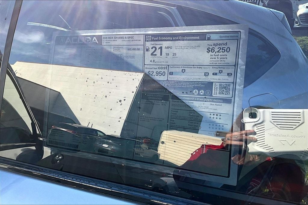 2026 Acura MDX A-Spec SH-AWD Solar Silver Metallic 19/25 City/Highway MPG 4D Sport Utility AWD 3.5L V6 SOHC i-VTEC 24V 10-Speed Automatic