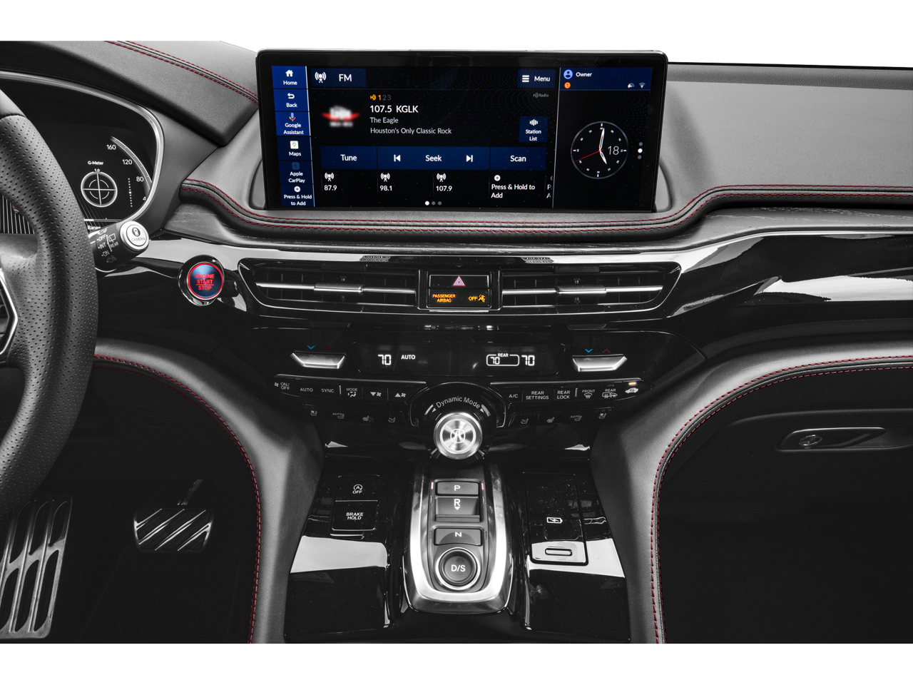 3rd row seats: split-bench, 4-Wheel Disc Brakes, ABS brakes, Adaptive suspension, Air Conditioning, Alloy wheels, AM/FM radio, Anti-whiplash front head restraints, Apple CarPlay/Android Auto, Audio memory, Auto High-beam Headlights, Auto tilt-away steering wheel, Auto-dimming Rear-View mirror, Auto-leveling suspension, Automatic temperature control, Brake assist, Bumpers: body-color, Compass, Curvilinear Quilted Premium Milano Leather and Ultrasuede Seats, Delay-off headlights, Driver door bin, Driver vanity mirror, Dual front impact airbags, Dual front side impact airbags, Electronic Stability Control, Emergency communication system: AcuraLink, Exterior Parking Camera Rear, Four wheel independent suspension, Front anti-roll bar, Front Bucket Seats, Front Center Armrest, Front dual zone A/C, Front fog lights, Front reading lights, Fully automatic headlights, Garage door transmitter: HomeLink, Heads-Up Display, Heated and Ventilated Front Sport Seats, Heated door mirrors, Heated front seats, Heated rear seats, Heated steering wheel, HVAC memory, Illuminated entry, Knee airbag, Lane departure: Lane Keeping Assist System (LKAS) active, Leather steering wheel, Low tire pressure warning, Memory seat, Navigation system: Google built-in (3-Years Unlimited Data Plan for In-Vehicle Apps), Occupant sensing airbag, Outside temperature display, Overhead airbag, Overhead console, Panic alarm, Passenger door bin, Passenger vanity mirror, Power door mirrors, Power driver seat, Power Liftgate, Power moonroof, Power passenger seat, Power steering, Power windows, Premium audio system: ELS Studio 3D Signature Edition, Radio data system, Radio: Bang and Olufsen Ultra Sound System, Rain sensing wipers, Rear air conditioning, Rear anti-roll bar, Rear reading lights, Rear seat center armrest, Rear window defroster, Rear window wiper, Remote keyless entry, Security system, Speed control, Speed-sensing steering, Speed-Sensitive Wipers, Split folding rear seat, Spoiler, Sport steering wheel, Steering wheel memory, Steering wheel mounted audio controls, Tachometer, Telescoping steering wheel, Tilt steering wheel, Traction control, Trip computer, Turn signal indicator mirrors, Variably intermittent wipers, Ventilated front seats, and Wheels: 21 x 9.5J Aluminum Alloy.