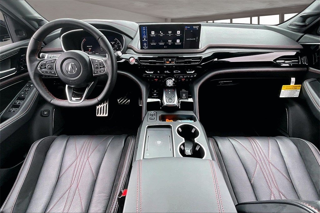 3rd row seats: split-bench, 4-Wheel Disc Brakes, ABS brakes, Adaptive suspension, Air Conditioning, Alloy wheels, AM/FM radio, Anti-whiplash front head restraints, Apple CarPlay/Android Auto, Audio memory, Auto High-beam Headlights, Auto tilt-away steering wheel, Auto-dimming Rear-View mirror, Auto-leveling suspension, Automatic temperature control, Brake assist, Bumpers: body-color, Compass, Curvilinear Quilted Premium Milano Leather and Ultrasuede Seats, Delay-off headlights, Driver door bin, Driver vanity mirror, Dual front impact airbags, Dual front side impact airbags, Electronic Stability Control, Emergency communication system: AcuraLink, Exterior Parking Camera Rear, Four wheel independent suspension, Front anti-roll bar, Front Bucket Seats, Front Center Armrest, Front dual zone A/C, Front fog lights, Front reading lights, Fully automatic headlights, Garage door transmitter: HomeLink, Heads-Up Display, Heated and Ventilated Front Sport Seats, Heated door mirrors, Heated front seats, Heated rear seats, Heated steering wheel, HVAC memory, Illuminated entry, Knee airbag, Lane departure: Lane Keeping Assist System (LKAS) active, Leather steering wheel, Low tire pressure warning, Memory seat, Navigation system: Google built-in (3-Years Unlimited Data Plan for In-Vehicle Apps), Occupant sensing airbag, Outside temperature display, Overhead airbag, Overhead console, Panic alarm, Passenger door bin, Passenger vanity mirror, Power door mirrors, Power driver seat, Power Liftgate, Power moonroof, Power passenger seat, Power steering, Power windows, Premium audio system: ELS Studio 3D Signature Edition, Radio data system, Radio: Bang and Olufsen Ultra Sound System, Rain sensing wipers, Rear air conditioning, Rear anti-roll bar, Rear reading lights, Rear seat center armrest, Rear window defroster, Rear window wiper, Remote keyless entry, Security system, Speed control, Speed-sensing steering, Speed-Sensitive Wipers, Split folding rear seat, Spoiler, Sport steering wheel, Steering wheel memory, Steering wheel mounted audio controls, Tachometer, Telescoping steering wheel, Tilt steering wheel, Traction control, Trip computer, Turn signal indicator mirrors, Variably intermittent wipers, Ventilated front seats, and Wheels: 21 x 9.5J Aluminum Alloy.
