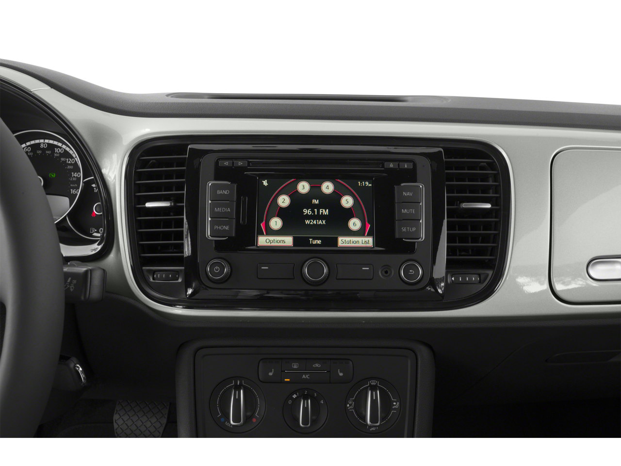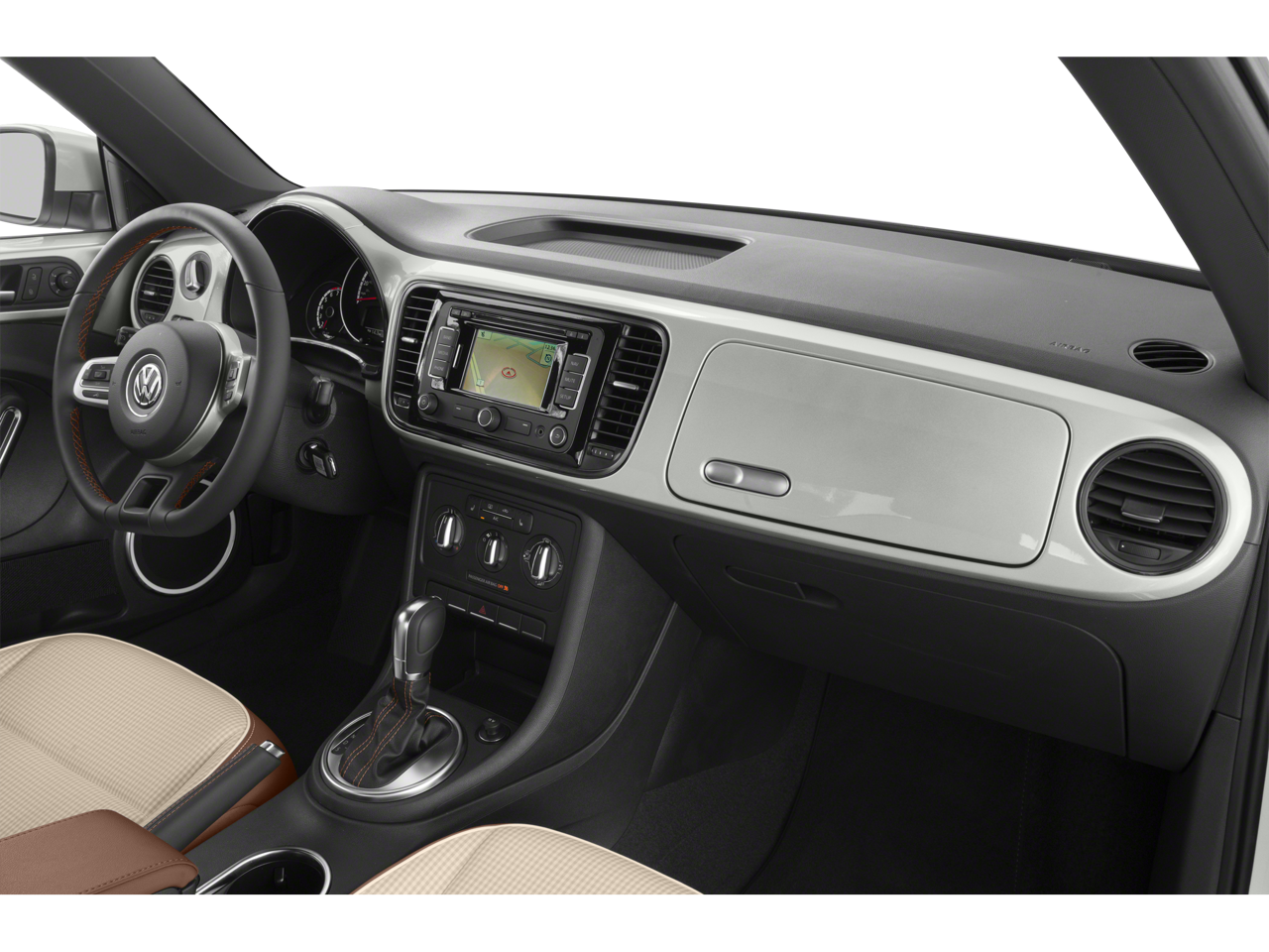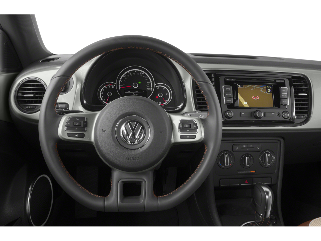 17 Heritage Alloy Wheels, 4-Wheel Disc Brakes, 8 Speakers, ABS brakes, Air Conditioning, Alloy wheels, AM/FM radio: SiriusXM, Bodyside moldings, Brake assist, Bumpers: body-color, CD player, Chrome wheels, Cloth & V-Tex Leatherette Seating Surfaces, Driver door bin, Driver vanity mirror, Dual front impact airbags, Dual front side impact airbags, Electronic Stability Control, Emergency communication system: VW Car-Net, Four wheel independent suspension, Front anti-roll bar, Front Bucket Seats, Front Center Armrest w/Storage, Front Comfort Seats, Front reading lights, Heated door mirrors, Heated front seats, Illuminated entry, Leather Shift Knob, Leather steering wheel, Low tire pressure warning, Navigation System, Occupant sensing airbag, Outside temperature display, Overhead console, Panic alarm, Passenger door bin, Passenger vanity mirror, Power door mirrors, Power steering, Power windows, Radio data system, Radio: RNS 315 Touchscreen Nav & Audio System, Rear anti-roll bar, Rear reading lights, Rear window defroster, Remote keyless entry, Speed control, Speed-sensing steering, Split folding rear seat, Spoiler, Steering wheel mounted audio controls, Tachometer, Telescoping steering wheel, Tilt steering wheel, Traction control, Trip computer, Turn signal indicator mirrors, and Variably intermittent wipers.