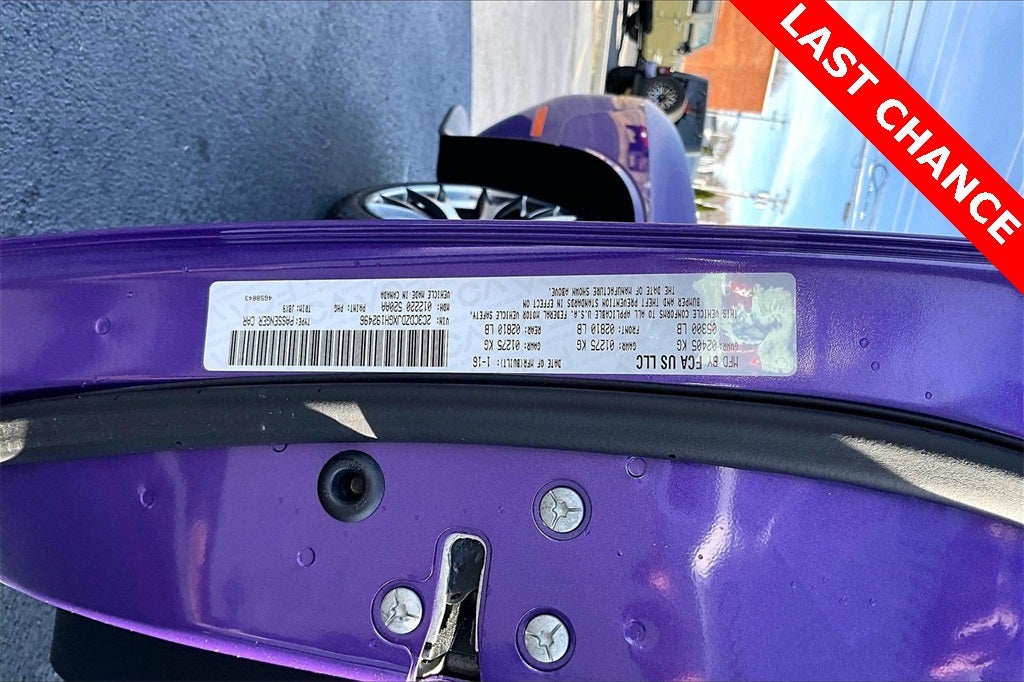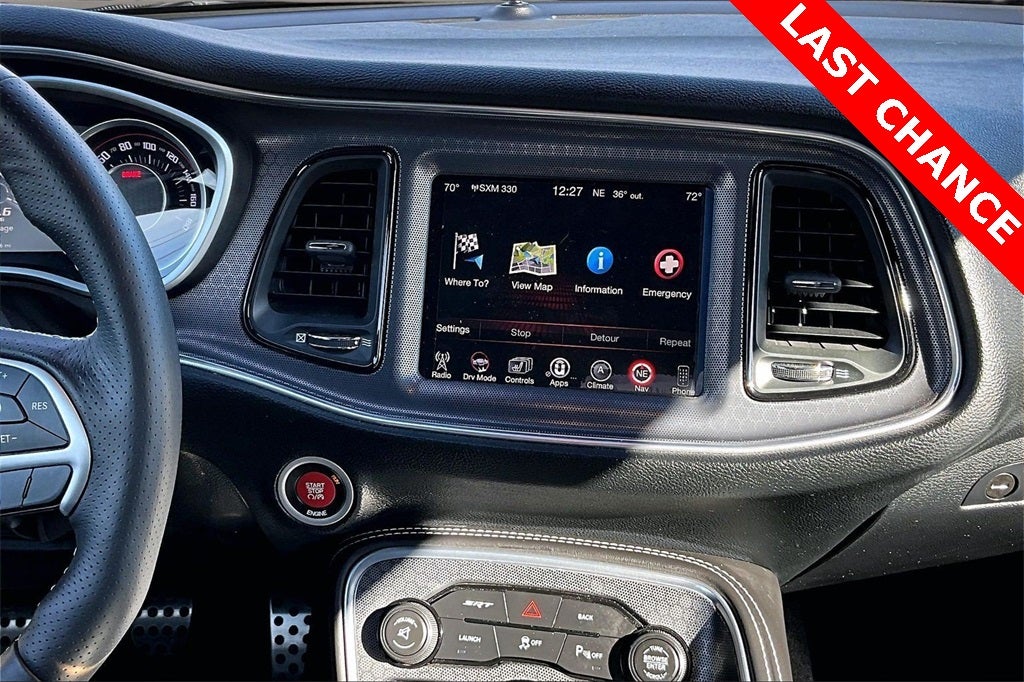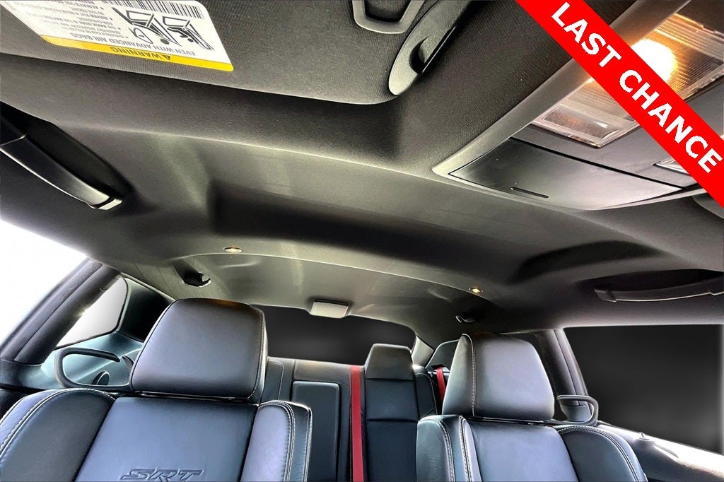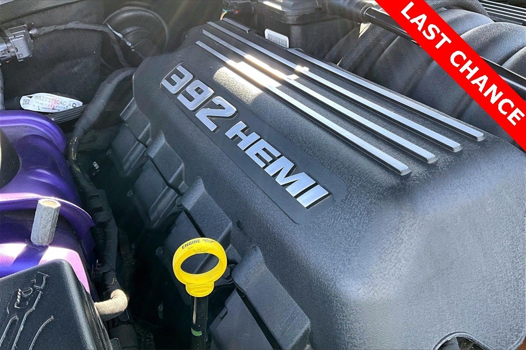 Quick Order Package 23K SRT 392, 18 Speakers, 8.4 Touchscreen Display, Adaptive suspension, Configurable Drive Mode, Electronic Stability Control, Front fog lights, Fully automatic headlights, GPS Navigation, harman/kardon® Speakers, HD Radio, Heated front seats, High-Intensity Discharge Headlights, Illuminated entry, Integrated Voice Command w/Bluetooth®, Laguna Performance Seats w/SRT Embossed Logo, Media Hub (SD, USB, AUX Ports), Navigation System, ParkView Rear Back-Up Camera, Performance Shift Indicator, Power driver seat, Power Sunroof, Radio: Uconnect 8.4 NAV, SiriusXM Satellite Radio, SiriusXM Traffic, SiriusXM Travel Link, Speed-sensing steering, Steering wheel mounted audio controls, Telescoping steering wheel, Tilt steering wheel, Uconnect Access, Wheels: 20 x 9.5 SRT Hyper Black Forged, 230MM Rear Axle, 4-Wheel Disc Brakes, ABS brakes, Air Conditioning, Alloy wheels, AM/FM radio: SiriusXM, Anti-whiplash front head restraints, Auto-dimming Rear-View mirror, Automatic temperature control, Brake assist, Bumpers: body-color, Compass, Delay-off headlights, Driver door bin, Driver vanity mirror, Dual front impact airbags, Dual front side impact airbags, Emergency communication system: Uconnect Access, Four wheel independent suspension, Front anti-roll bar, Front Bucket Seats, Front Center Armrest, Front dual zone A/C, Front reading lights, Garage door transmitter: HomeLink, Heated door mirrors, Heated steering wheel, Leather Shift Knob, Low tire pressure warning, Outside temperature display, Overhead airbag, Overhead console, Panic alarm, Passenger door bin, Passenger vanity mirror, Pirelli Brand Tires, Power door mirrors, Power steering, Power windows, Radio data system, Rear anti-roll bar, Rear reading lights, Rear seat center armrest, Rear window defroster, Red Seat Belts, Remote keyless entry, Security system, Speed control, Split folding rear seat, Spoiler, Tachometer, Traction control, Trip computer, Twin Black Center Stripes, Variably intermittent wipers, and Ventilated front seats.