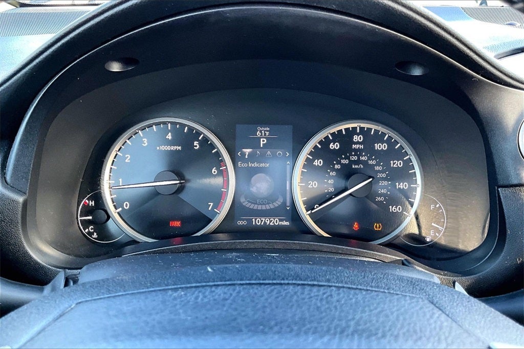 3.888 Axle Ratio, 4-Wheel Disc Brakes, 8 Speakers, ABS brakes, Air Conditioning, Alloy wheels, AM/FM radio: SiriusXM, Auto-dimming Rear-View mirror, Automatic temperature control, Brake assist, Bumpers: body-color, CD player, Delay-off headlights, Driver door bin, Driver vanity mirror, Dual front impact airbags, Dual front side impact airbags, Electronic Stability Control, Emergency communication system: Lexus Enform w/Safety Connect, Exterior Parking Camera Rear, Four wheel independent suspension, Front anti-roll bar, Front Bucket Seats, Front Center Armrest, Front dual zone A/C, Front fog lights, Front reading lights, Fully automatic headlights, Heated door mirrors, High Clearance Lamp, Illuminated entry, Knee airbag, Leather Shift Knob, Leather steering wheel, Low tire pressure warning, Occupant sensing airbag, Outside temperature display, Overhead airbag, Overhead console, Panic alarm, Passenger door bin, Passenger vanity mirror, Power door mirrors, Power driver seat, Power passenger seat, Power steering, Power windows, Radio data system, Radio: AM/FM/CD Lexus Display Audio, Rear anti-roll bar, Rear seat center armrest, Rear window defroster, Rear window wiper, Remote keyless entry, Roof rack: rails only, Security system, Speed control, Speed-sensing steering, Split folding rear seat, Spoiler, Steering wheel mounted audio controls, Synthetic Leather Seat Trim, Tachometer, Telescoping steering wheel, Tilt steering wheel, Traction control, Trip computer, Turn signal indicator mirrors, Variably intermittent wipers, Wheels: 17 x 7.0J 10-Spoke Aluminum, and Wheels: 18 x 7.5J.