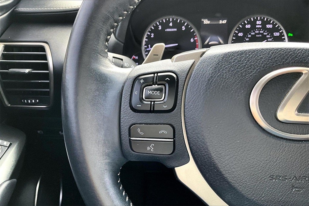 ABS brakes, Active Cruise Control, Alloy wheels, Auto High-beam Headlights, Compass, Electronic Stability Control, Exterior Parking Camera Rear, F Sport Badging Side and Rear, Front dual zone A/C, Fully automatic headlights, Heated door mirrors, Illuminated entry, Low tire pressure warning, Power Tilt & Slide Moonroof/Sunroof, Radio: AM/FM/CD Lexus Display Audio, Remote keyless entry, Steering wheel mounted audio controls, Telescoping steering wheel, Tilt steering wheel, Traction control, Wheels: 18 x 7.5 F SPORT Alloy, 4-Wheel Disc Brakes, 8 Speakers, Active Sound Control, Air Conditioning, Aluminum Pedals & Foot Rest, AM/FM radio: SiriusXM, Automatic temperature control, Axle Ratio: 4.117, Black Headliner, Brake assist, Bumpers: body-color, CD player, Deeply Bolstered Sport Front Bucket Seats, Delay-off headlights, Driver door bin, Driver vanity mirror, Dual front impact airbags, Dual front side impact airbags, Emergency communication system: Lexus Enform w/Safety Connect, F Sport Door Scuff Plates, F Sport NuLuxe Seat Trim, Four wheel independent suspension, Front & Rear Performance Rods, Front anti-roll bar, Front Bucket Seats, Front Center Armrest, Front Fog & Driving Lamp, Front fog lights, Front reading lights, High Clearance Lamp, Knee airbag, Leather Shift Knob, Leather steering wheel, Metallic Sport Trim, Occupant sensing airbag, Outside temperature display, Overhead airbag, Overhead console, Panic alarm, Passenger door bin, Passenger vanity mirror, Power door mirrors, Power driver seat, Power passenger seat, Power steering, Power windows, Radio data system, Rear anti-roll bar, Rear seat center armrest, Rear window defroster, Rear window wiper, Roof rack: rails only, Security system, Speed control, Speed-sensing steering, Split folding rear seat, Spoiler, Sport Tuned Suspension, Tachometer, Trip computer, Turbo Boost Gauge and G-Meter, Turn signal indicator mirrors, Unique Front Bumper w/Mesh Grille Insert, Unique Gear Shift, and Variably intermittent wipers.