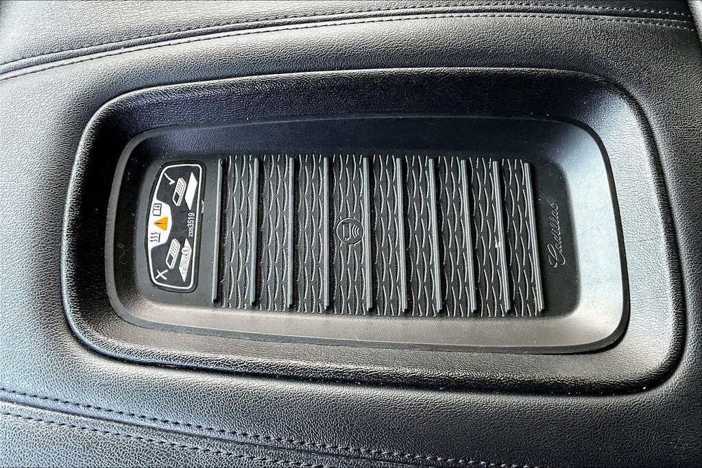 Driver Assist Package (Advanced Adaptive Cruise Control, Automatic Seat Belt Tightening, Electronic Powered Parking Brake, Enhanced Automatic Emergency Braking, and Reverse Automatic Braking), Driver Awareness Package (Forward Collision Alert, IntelliBeam Automatic High Beam On/Off, Lane Change Alert w/Side Blind Zone Alert, Lane Keep Assist w/Lane Departure Warning, Rear Cross Traffic Alert, and Safety Alert Seat), Preferred Equipment Group 1SC (3rd Row DVD Screen, Front Cornering Lamps, Illuminating Door Handles, Power Configurable Second Row Bucket Seats, Power Tilt-Sliding Sunroof w/Express-Open/Close, Rear Camera Mirror, Rear Camera Mirror Washer, Rear Seat Entertainment System, Reconfigurable 4-Color Head-Up Display, Running Side Board Assist Steps, and VAC Power 17 Disc Brakes), Theft-Deterrent Package (Inclination Sensor, Theft-Deterrent Alarm System, and Vehicle Interior Movement Sensor), 12-Way Power Front Passenger Seat Adjuster, 16 Speakers, 2-Presets Memory For Driver Seat Adjuster, 3.23 Axle Ratio, 3rd row seats: split-bench, 4-Wheel Disc Brakes, A/V remote, ABS brakes, Adaptive suspension, Adjustable pedals, Air Conditioning, Alloy wheels, AM/FM radio: SiriusXM, Apple CarPlay/Android Auto, Auto High-beam Headlights, Auto tilt-away steering wheel, Auto-dimming door mirrors, Auto-dimming Rear-View mirror, Auto-leveling suspension, Automatic temperature control, Black Front License Plate Bracket, Bodyside moldings, Bose Centerpoint 16 Speaker Surround Sound System, Brake assist, Bumpers: body-color, Compass, Delay-off headlights, Driver door bin, Driver vanity mirror, Dual front impact airbags, Dual front side impact airbags, Electronic Stability Control, Emergency communication system: OnStar and Cadillac connected services capable, Exterior Parking Camera Rear, Front anti-roll bar, Front Bucket Seats, Front Center Armrest w/Storage, Front dual zone A/C, Front reading lights, Front wheel independent suspension, Fully automatic headlights, Garage door transmitter, HD Radio, Headphones, Heads-Up Display, Heated & Cooled Driver & Front Passenger Seats, Heated door mirrors, Heated front seats, Heated rear seats, Heated steering wheel, Illuminated entry, Leather Seating Surfaces, Leather Shift Knob, Leather steering wheel, Low tire pressure warning, Magnetic Ride Control Suspension, Memory seat, Navigation System, Occupant sensing airbag, Outside temperature display, Overhead airbag, Overhead console, Panic alarm, Passenger door bin, Passenger vanity mirror, Pedal memory, Power door mirrors, Power driver seat, Power Liftgate, Power moonroof, Power passenger seat, Power steering, Power windows, Radio data system, Radio: AM/FM Cadillac User Experience w/Nav, Rain sensing wipers, Rear air conditioning, Rear anti-roll bar, Rear audio controls, Rear reading lights, Rear window defroster, Rear window wiper, Remote keyless entry, Security system, SiriusXM NavTraffic, SiriusXM Radio, Speed control, Split folding rear seat, Spoiler, Steering wheel memory, Steering wheel mounted audio controls, Tachometer, Telescoping steering wheel, Tilt steering wheel, Traction control, Trip computer, Turn signal indicator mirrors, Variably int