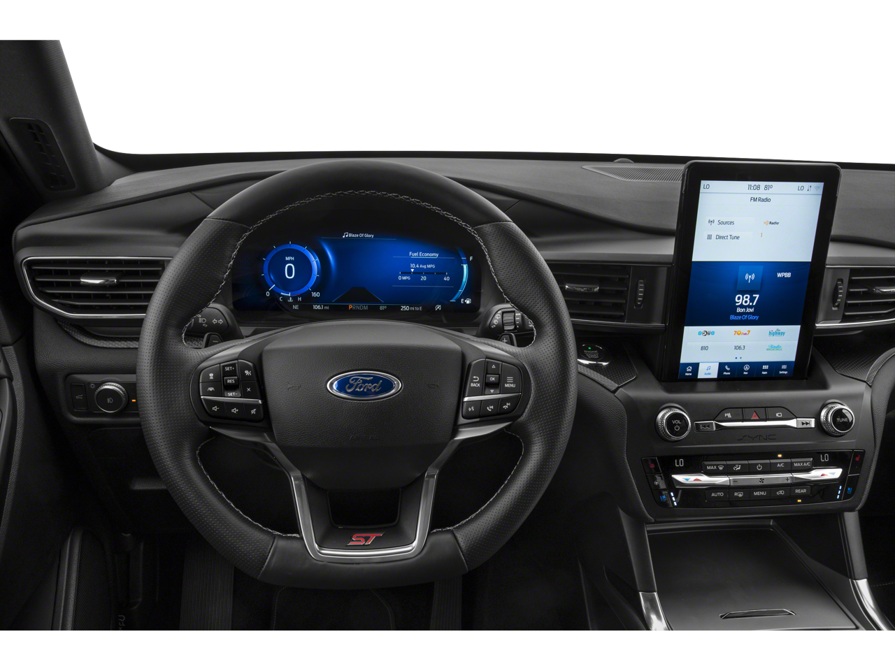 2020 Ford Explorer ST Black Fully serviced, CARFAX One Owner!, 3rd row seats: bench, Alloy wheels, Auto High-beam Headlights, Auto-dimming door mirrors, Auto-dimming Rear-View mirror, Emergency communication system: SYNC 3 911 Assist, Equipment Group 400A, Exterior Parking Camera Rear, FordPass Connect, Front fog lights, Fully automatic headlights, Garage door transmitter: HomeLink, Heated door mirrors, Heated front seats, Heated rear seats, Heated steering wheel, Illuminated entry, Leather steering wheel, Memory seat, Navigation System, Outside temperature display, Power door mirrors, Power driver seat, Power Liftgate, Power passenger seat, Radio: B&O Sound System by Bang & Olufsen, Rain sensing wipers, Sport steering wheel, Steering wheel memory, Steering wheel mounted audio controls, SYNC 3 Communications & Entertainment System, SYNC 3/Apple CarPlay/Android Auto, Tachometer, Telescoping steering wheel, Tilt steering wheel, Turn signal indicator mirrors, Twin Panel Moonroof, Ventilated front seats, Voice-Activated Touchscreen Navigation System. 4D Sport Utility 4WD 3.0L EcoBoost V6 10-Speed Automatic