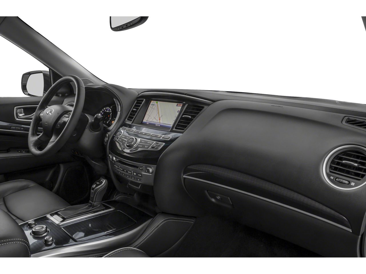 Cargo Package Essential (Cargo Protector, Console Net, First Aid Kit, and Rear Cargo Cover), Essential Package (Around View Monitor w/Moving Object Detection, Front & Rear Sonar Sensors (2FR/2RR), Illuminated Kick Plates (IKP), INFINITI InTouch w/Navigation & InTouch Services, Leather-Appointed Seat Trim, Rain-Sensing Front Windshield Wipers, and Voice Recognition for Navigation Functions), Alloy wheels, Auto-dimming Rear-View mirror, Blind Spot Warning, Electronic Stability Control, Heated door mirrors, Heated front seats, Heated steering wheel, Illuminated entry, Leather steering wheel, Leatherette Seat Trim, Memory seat, Navigation System, Outside temperature display, Power door mirrors, Power driver seat, Power Liftgate, Power moonroof, Power passenger seat, Radio: AM/FM/CD/MP3 w/Bose Premium Audio System, Reclining 3rd row seat, Steering wheel mounted audio controls, Telescoping steering wheel, Tilt steering wheel, Turn signal indicator mirrors, 13 Speakers, 3rd row seats: bench, 4-Wheel Disc Brakes, ABS brakes, Air Conditioning, AM/FM radio: SiriusXM, Anti-whiplash front head restraints, Automatic temperature control, Axle Ratio: 5.25, Bodyside moldings, Brake assist, Bumpers: body-color, Carpeted Floor Mats (4-Piece Set), CD player, Delay-off headlights, Driver door bin, Driver vanity mirror, Dual front impact airbags, Dual front side impact airbags, Four wheel independent suspension, Front anti-roll bar, Front Bucket Seats, Front Center Armrest w/Storage, Front dual zone A/C, Front fog lights, Front reading lights, Fully automatic headlights, Garage door transmitter: HomeLink, Heated Front Seats, Illuminated Kick Plates (K11), Literature Kit, Low tire pressure warning, Occupant sensing airbag, Overhead airbag, Overhead console, Panic alarm, Passenger door bin, Passenger vanity mirror, Power steering, Power windows, Radio data system, Rear air conditioning, Rear anti-roll bar, Rear Bumper Protector, Rear reading lights, Rear seat center armrest, Rear window defroster, Rear window wiper, Remote keyless entry, Roof rack: rails only, Security system, Speed control, Speed-sensing steering, Speed-Sensitive Wipers, Splash Guards, Split folding rear seat, Spoiler, Steering wheel memory, Tachometer, Traction control, Tri