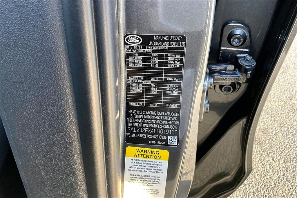 2020 Land Rover Range Rover Evoque S Gray 10-Way Front Bucket Seats, 180 Watt Range Rover Sound System w/6-Speakers, Alloy wheels, Apple CarPlay & Android Auto, Exterior Parking Camera Rear, Fully automatic headlights, Illuminated entry, Navigation system: InControl Navigation Pro, Power Socket Pack 1, Radio: Touch Pro Infotainment w/10 Touchscreen, Rain sensing wipers, Telescoping steering wheel, Tilt steering wheel. 4D Sport Utility AWD I4 9-Speed Automatic