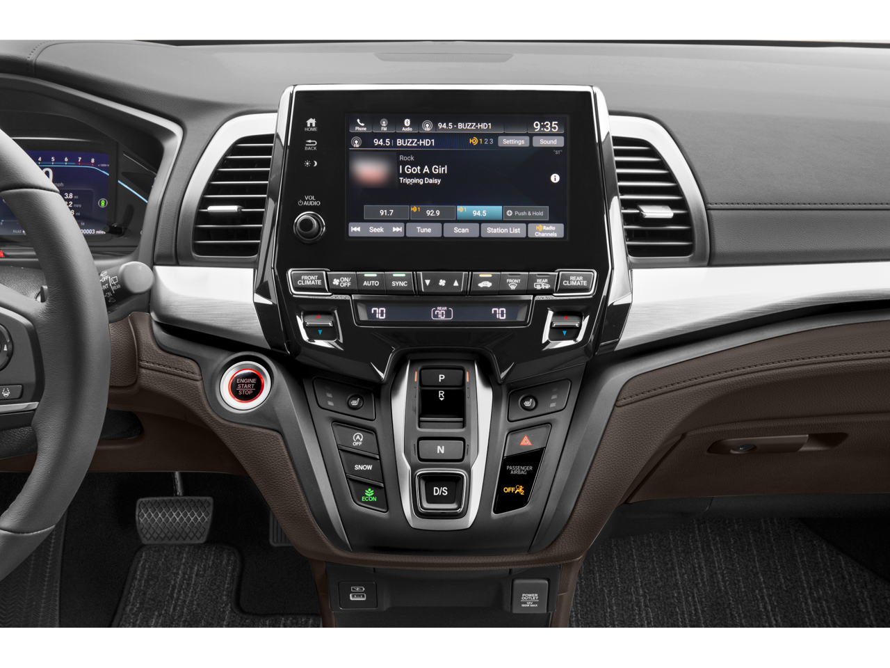 - Radio: 160-Watt AM/FM/HD/SiriusXM Audio System -inc: 7 speakers including subwoofer, Speed-Sensitive Volume Compensation (SVC), Bluetooth® HandsFreeLink, Bluetooth® streaming audio, MP3/auxiliary input jack, Radio Data System (RDS), SMS text message function, 2.5-amp USB audio interface port in center console, 2.5-amp USB charging port in front console, (2) 2.5-amp USB charging ports in second row, CabinControl remote compatibility, 8" display audio w/high-resolution electrostatic touch-screen and customizable feature settings, HondaLink, Apple CarPlay, Android Auto, illuminated steering wheel-mounted audio controls and black fin-type roof-mounted antenna, SiriusXM requires a subscription after any trial period, If you decide to continue your SiriusXM service at the end of your trial subscription, the plan you choose will automatically renew and bill at then-current rates until you call SiriusXM at 1-866-635-2349 to cancel, See our customer agreement for complete terms at www.siriusxm.com, Fees and programming subject to change, Available in the 48 contiguous United States and DC