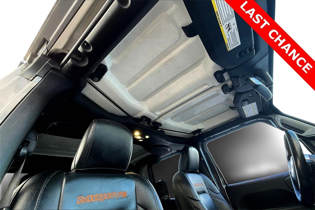 8.4 Radio & Premium Audio Group (1-Year SiriusXM Guardian Trial, 5-Year SiriusXM Traffic Service, 5-Year SiriusXM Travel Link Service, 8.4 Touchscreen Display, Alpine Premium Audio System, Auto-Dimming Rear-View Mirror, Emergency/Assistance Call, For Details, Visit DriveUconnect.com, GPS Navigation, HD Radio, Radio: Uconnect 4C Nav w/8.4 Display, SiriusXM Traffic Plus, and SiriusXM Travel Link), Auxiliary Switch Group (240 Amp Alternator, 700 Amp Maintenance Free Battery, and Auxiliary Switches), Quick Order Package 24D, Trailer Tow Package (Class IV Hitch Receiver, Heavy-Duty Engine Cooling, and Trailer Hitch Zoom), 97 mph Maximum Speed Calibration, Alloy wheels, Apple CarPlay/Android Auto, Body Color 3-Piece Hard Top, Electronic Stability Control, Freedom Panel Storage Bag, Front Center Armrest w/Storage, Garage door transmitter, Heated door mirrors, Heavy Duty Suspension w/Gas Shocks, Illuminated entry, No Soft Top, Outside temperature display, ParkView Rear Back-Up Camera, Premium Cloth Seats w/Sport Bolsters, Rear Sliding Window, Rear Window Defroster, Split folding rear seat, Telescoping steering wheel, Tilt steering wheel, Traction control, 4-Wheel Disc Brakes, 4.10 Rear Axle Ratio, 8 Speakers, ABS brakes, Air Conditioning, AM/FM radio: SiriusXM, Automatic temperature control, Body Color Fender Flares (2-Piece), Brake assist, Compass, Delay-off headlights, Driver door bin, Driver vanity mirror, Dual front impact airbags, Dual front side impact airbags, Front anti-roll bar, Front Bucket Seats, Front dual zone A/C, Front fog lights, Front License Plate Bracket, Front reading lights, Fully automatic headlights, Integrated roll-over protection, Leather steering wheel, Low tire pressure warning, Manufacturer's Statement of Origin, Occupant sensing airbag, Panic alarm, Passenger door bin, Passenger vanity mirror, Power door mirrors, Power steering, Power windows, Radio data system, Radio: Uconnect 4 w/7 Display, Rear anti-roll bar, Rear reading lights, Remote keyless entry, Security system, Speed control, Steering wheel mounted audio co