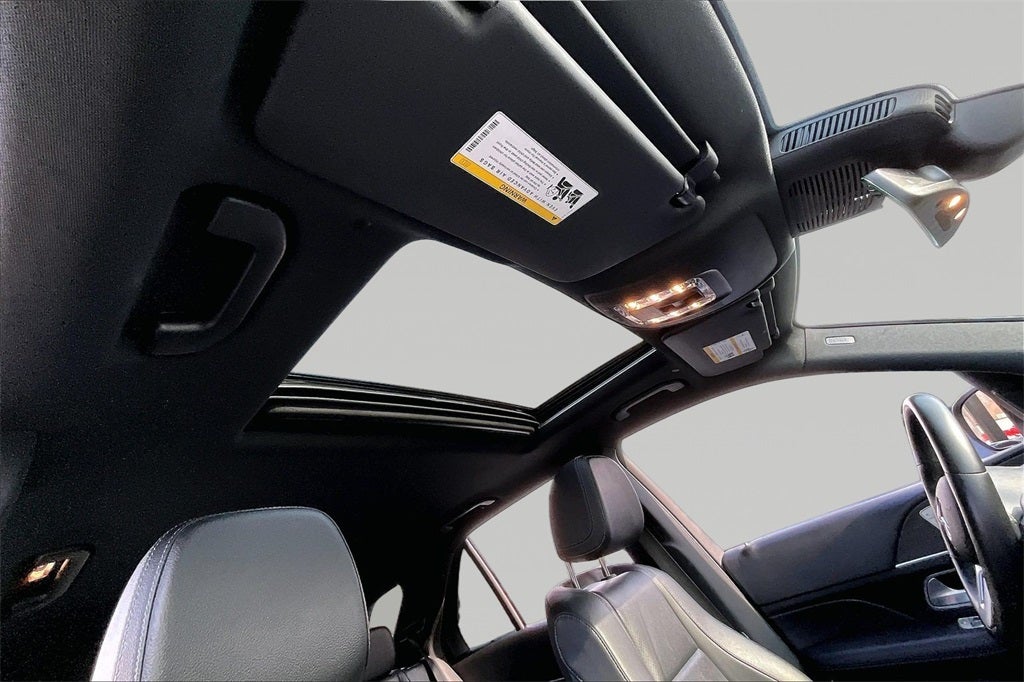 Premium Package (115V Power Outlet, Burmester® Surround Sound System, and Parking Assist Code), Alloy wheels, Anti-whiplash front head restraints, Apple CarPlay®/Android Auto®, Auto High-beam Headlights, Auto tilt-away steering wheel, Auto-dimming door mirrors, Auto-dimming Rear-View mirror, Compass, Exterior Parking Camera Rear, Fully automatic headlights, Heated door mirrors, Heated front seats, Heated Power Front Seats w/Driver Memory, Illuminated entry, Leather steering wheel, MB-Tex Upholstery, Memory seat, Navigation system: MBUX, Outside temperature display, Power adjustable front head restraints, Power door mirrors, Power driver seat, Power Liftgate, Power moonroof, Radio: 12.3 Media Display w/Touchscreen, Rear fog lights, Rear window defroster, Remote keyless entry, Spoiler, Steering wheel memory, Steering wheel mounted audio controls, Telescoping steering wheel, Tilt steering wheel, Turn signal indicator mirrors, 3.69 Axle Ratio, 4-Wheel Disc Brakes, 8 Speakers, ABS brakes, Air Conditioning, AM/FM radio: SiriusXM, Automatic temperature control, Brake assist, Bumpers: body-color, Delay-off headlights, Driver door bin, Driver vanity mirror, Dual front impact airbags, Dual front side impact airbags, Electronic Stability Control, Emergency communication system: eCall Emergency System, Four wheel independent suspension, Front anti-roll bar, Front Bucket Seats, Front Center Armrest, Front dual zone A/C, Front reading lights, Garage door transmitter: HomeLink, Genuine wood console insert, Genuine wood dashboard insert, Genuine wood door panel insert, Knee airbag, Low tire pressure warning, Occupant sensing airbag, Overhead airbag, Panic alarm, Passenger door bin, Passenger vanity mirror, Power passenger seat, Power steering, Power windows, Premium audio system: MBUX, Radio data system, Rain sensing wipers, Rear anti-roll bar, Rear reading lights, Rear seat center armrest, Rear window wiper, Roof rack: rails only, Security system, Speed control, Speed-sensing steering, Speed-Sensitive Wipers, Split folding rear seat, Tachometer, Traction control, Trip computer, Weather band radio, and Wheels: 19 Twin 5-Spoke.