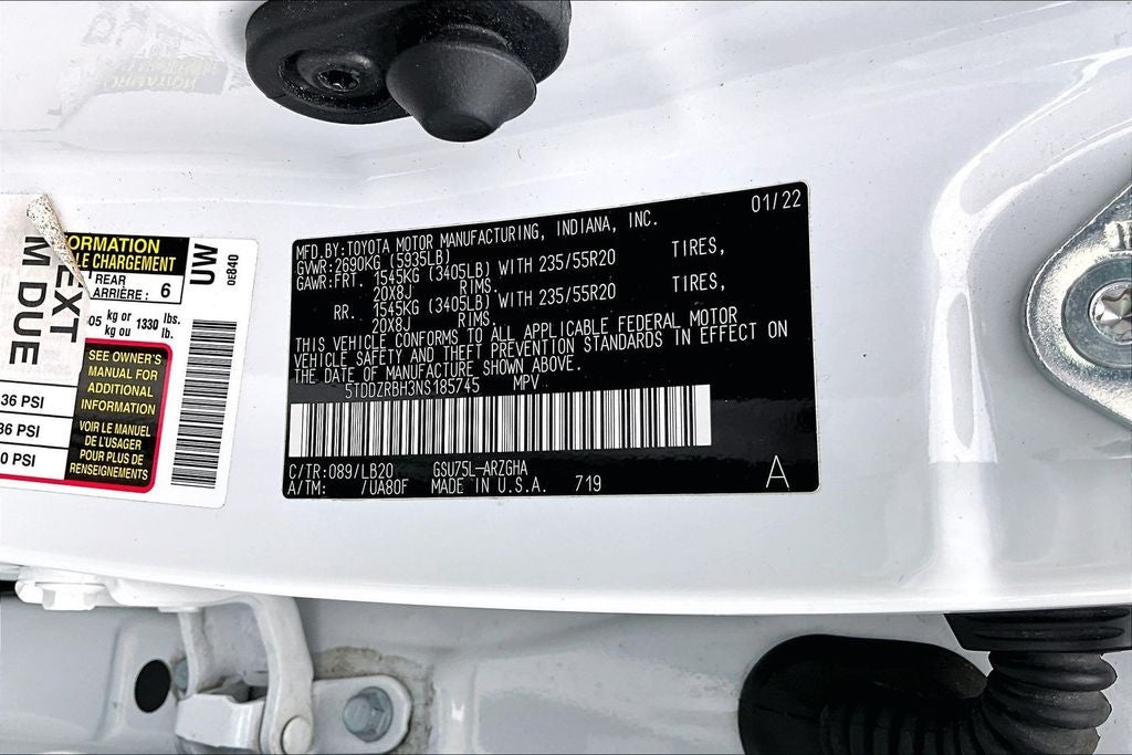 12.3 Screen & Birds Eye View (Panoramic View Monitor and Radio: Premium Audio w/JBL Clari-Fi & 12.3 Screen), 11 Speakers, 2nd Row Bench Seat, 3.003 Axle Ratio, 3rd row seats: split-bench, 4-Wheel Disc Brakes, ABS brakes, Air Conditioning, All Weather Floor & Cargo Liner (TMS), Alloy wheels, AM/FM radio: SiriusXM, Apple CarPlay/Android Auto, Auto High-beam Headlights, Auto-dimming Rear-View mirror, Automatic temperature control, Brake assist, Bumpers: body-color, Cargo Cross Bars (TMS), Chrome wheels, Clear Rear Bumper Applique (TMS), Delay-off headlights, Driver door bin, Driver vanity mirror, Dual front impact airbags, Dual front side impact airbags, Electronic Stability Control, Emergency communication system: Safety Connect with 1-year trial, Exterior Parking Camera Rear, Four wheel independent suspension, Front anti-roll bar, Front Bucket Seats, Front Center Armrest, Front dual zone A/C, Front fog lights, Front reading lights, Fully automatic headlights, Garage door transmitter: HomeLink, Heated door mirrors, Heated front seats, Heated steering wheel, Heated/Ventilated Front Bucket Seats, Illuminated entry, Knee airbag, Leather Seat Trim, Leather Shift Knob, Low tire pressure warning, Memory seat, Navigation system: Dynamic Navigation (3-year trial), Occupant sensing airbag, Outside temperature display, Overhead airbag, Overhead console, Panic alarm, Passenger door bin, Passenger vanity mirror, Power door mirrors, Power driver seat, Power Liftgate, Power moonroof, Power passenger seat, Power steering, Power windows, Radio: Premium Audio w/JBL Clari-Fi, Rear air conditioning, Rear anti-roll bar, Rear reading lights, Rear window defroster, Rear window wiper, Reclining 3rd row seat, Remote keyless entry, Roof rack: rails only, Security system, Speed control, Speed-sensing steering, Split folding rear seat, Spoiler, Steering wheel mounted audio controls, Tachometer, Telescoping steering wheel, Tilt steering wheel, Traction control, Trip computer, Turn signal indicator mirrors, Variably intermittent wipers, Ventilated front seats, and Wheels: 20 Chrome Alloy.