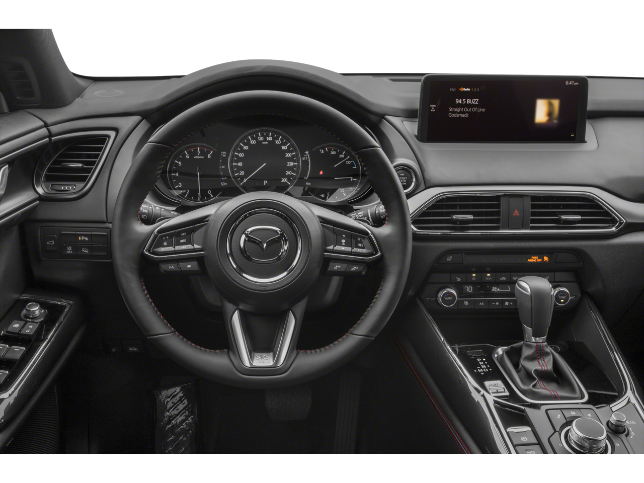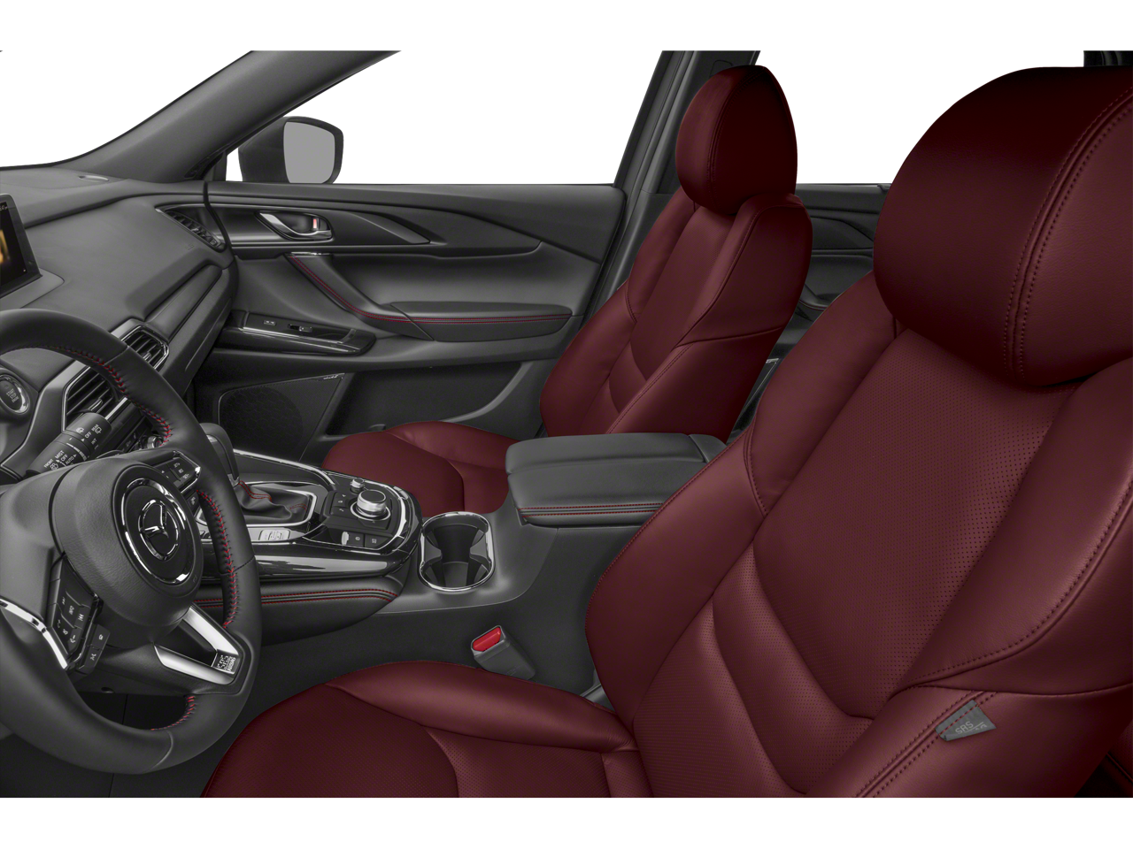 12 Speakers, 3rd row seats: bench, 4-Wheel Disc Brakes, 4.411 Axle Ratio, ABS brakes, Air Conditioning, Alloy wheels, AM/FM radio: SiriusXM, AppLink/Apple CarPlay and Android Auto, Auto High-beam Headlights, Auto-dimming Rear-View mirror, Automatic temperature control, Black Lug Nuts & Black Wheel Locks, Brake assist, Bumpers: body-color, Compass, Delay-off headlights, Driver door bin, Driver vanity mirror, Dual front impact airbags, Dual front side impact airbags, E911 Automatic Emergency Notification, Electronic Stability Control, Emergency communication system: MAZDA CONNECT, Exterior Parking Camera Rear, Four wheel independent suspension, Front anti-roll bar, Front Bucket Seats, Front Center Armrest, Front dual zone A/C, Front fog lights, Front reading lights, Fully automatic headlights, Garage door transmitter: HomeLink, Heated door mirrors, Heated front seats, Heated rear seats, Heated steering wheel, Heated/Ventilated Front Bucket Seats, Illuminated entry, Infotainment System Voice Command, Leather Seat Trim, Leather Shift Knob, Leather steering wheel, Low tire pressure warning, Mazda Connected Services, Memory seat, Occupant sensing airbag, Outside temperature display, Overhead airbag, Overhead console, Pandora Internet Radio Integration, Panic alarm, Passenger door bin, Passenger vanity mirror, Power door mirrors, Power driver seat, Power Liftgate, Power moonroof, Power passenger seat, Power steering, Power windows, Radio Broadcast Data System Program Information, Radio data system, Radio: AM/FM w/Bose Premium Audio System, Rain sensing wipers, Rear air conditioning, Rear anti-roll bar, Rear reading lights, Rear window defroster, Rear window wiper, Remote keyless entry, Roadside Assistance Kit, SiriusXM Satellite Radio, SMS Text Msg Audio Delivery & Reply, Speed control, Speed-sensing steering, Split folding rear seat, Spoiler, Steering wheel mounted audio controls, Tachometer, Telescoping steering wheel, Tilt steering wheel, Traction control, Trip computer, Turn signal indicator mirrors, Variably intermittent wipers, Ventilated front seats, and Wheels: 20 x 8.5J Aluminum Alloy.