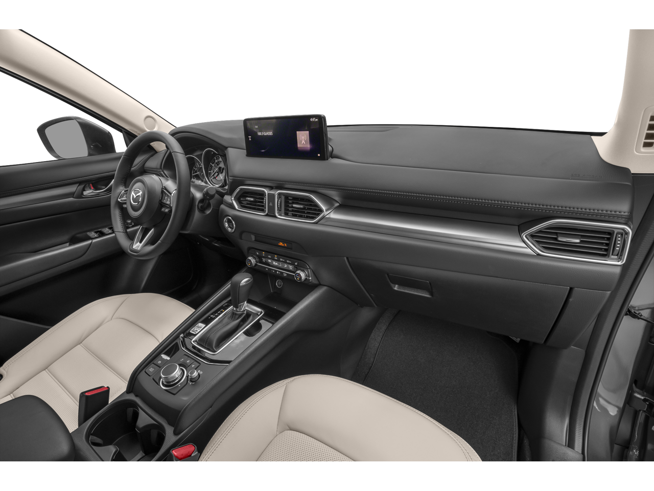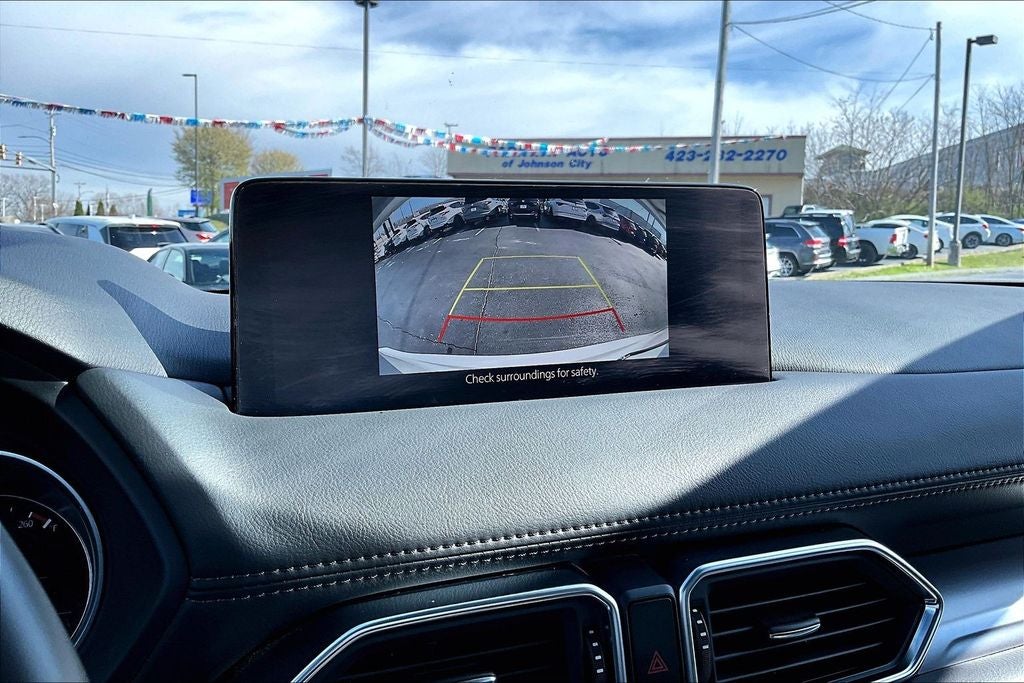 4-Wheel Disc Brakes, 4.624 Axle Ratio, 6 Speakers, ABS brakes, Air Conditioning, Alloy wheels, AM/FM radio, AppLink/Apple CarPlay and Android Auto, Auto High-beam Headlights, Auto-dimming Rear-View mirror, Automatic temperature control, Brake assist, Bumpers: body-color, Delay-off headlights, Driver door bin, Driver vanity mirror, Dual front impact airbags, Dual front side impact airbags, E911 Automatic Emergency Notification, Electronic Stability Control, Emergency communication system: MAZDA CONNECT, Exterior Parking Camera Rear, Four wheel independent suspension, Front anti-roll bar, Front Bucket Seats, Front Center Armrest w/Storage, Front dual zone A/C, Front reading lights, Fully automatic headlights, Garage door transmitter: HomeLink, Heated Front Bucket Seats, Heated front seats, Illuminated entry, Infotainment System Voice Command, Leather Seat Trim, Leather Shift Knob, Leather steering wheel, Low tire pressure warning, Memory seat, Multifunction Commander Control, Occupant sensing airbag, Outside temperature display, Overhead airbag, Overhead console, Pandora, Panic alarm, Passenger door bin, Passenger vanity mirror, Power door mirrors, Power driver seat, Power Liftgate, Power moonroof, Power passenger seat, Power steering, Power windows, Radio Broadcast Data System Program Information, Radio data system, Radio: AM/FM/HD Audio System, Rain sensing wipers, Rear anti-roll bar, Rear reading lights, Rear seat center armrest, Rear window defroster, Rear window wiper, Remote keyless entry, Retractable Cargo Cover, Rhodium White Metallic Paint, Roadside Assistance Kit, SMS Text Msg Audio Delivery & Reply, Speed control, Speed-sensing steering, Split folding rear seat, Spoiler, Steering wheel mounted audio controls, Tachometer, Telescoping steering wheel, Tilt steering wheel, Traction control, Trailer Hitch w/Harness, Trip computer, Turn signal indicator mirrors, Variably intermittent wipers, Wheel Locks, and Wheels: 17 x 7J Aluminum Alloy.