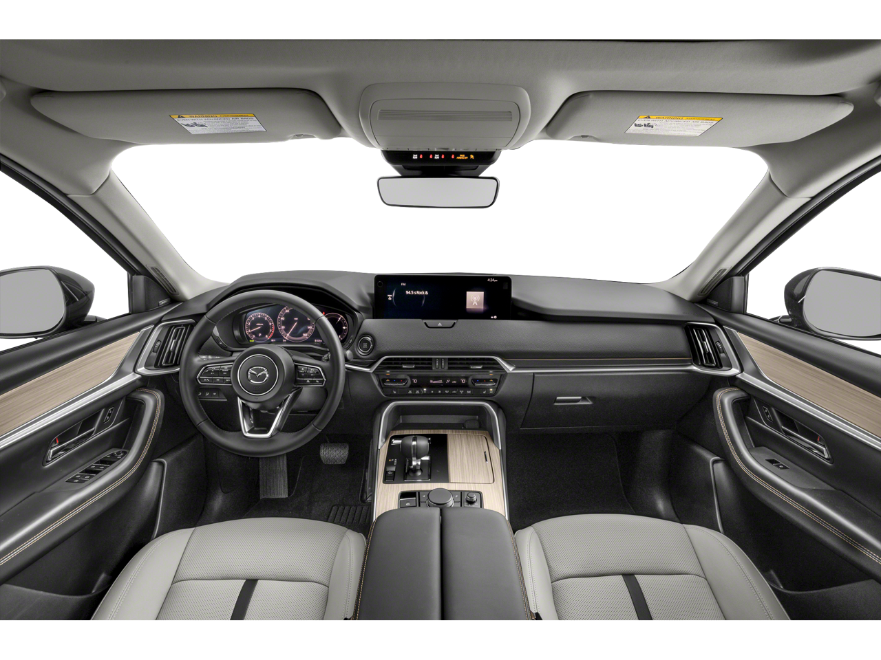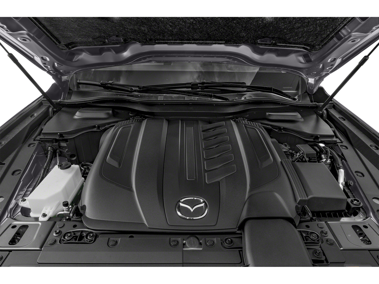 12 Speakers, 3.692 Axle Ratio, 3rd row seats: bench, 4-Wheel Disc Brakes, ABS brakes, Air Conditioning, Alloy wheels, AM/FM radio: SiriusXM, Auto High-beam Headlights, Auto-dimming Rear-View mirror, Automatic temperature control, Brake assist, Bumpers: body-color, Compass, Delay-off headlights, Driver door bin, Driver vanity mirror, Dual front impact airbags, Dual front side impact airbags, E911 Automatic Emergency Notification, Electronic Stability Control, Emergency communication system: MAZDA CONNECT, Exterior Parking Camera Rear, Four wheel independent suspension, Front anti-roll bar, Front Bucket Seats, Front Center Armrest w/Storage, Front dual zone A/C, Front reading lights, Fully automatic headlights, Garage door transmitter: HomeLink, Heads-Up Display, Heated door mirrors, Heated Front Bucket Seats, Heated front seats, Illuminated entry, Infotainment System Voice Command, Knee airbag, Leather Seat Trim, Leather Shift Knob, Leather steering wheel, Low tire pressure warning, Mazda Connected Services, Mazda Navigation System, Memory seat, Navigation system: MAZDA CONNECT, Occupant sensing airbag, Outside temperature display, Overhead airbag, Overhead console, Pandora Internet Radio Integration, Panic alarm, Passenger door bin, Passenger vanity mirror, Power door mirrors, Power driver seat, Power Liftgate, Power moonroof, Power passenger seat, Power steering, Power windows, Radio Broadcast Data System Program Information, Radio data system, Radio: AM/FM w/Bose Audio Sound System, Rain sensing wipers, Rear air conditioning, Rear anti-roll bar, Rear reading lights, Rear seat center armrest, Rear window defroster, Rear window wiper, Remote keyless entry, Rhodium White Premium Paint Charge, Security system, SMS Text Msg Audio Delivery & Reply, Speed control, Speed-sensing steering, Split folding rear seat, Spoiler, Steering wheel mounted audio controls, Tachometer, Telescoping steering wheel, Tilt steering wheel, Traction control, Trip computer, Turn signal indicator mirrors, Variably intermittent wipers, and Wheels: 21 x 9.5J Aluminum Alloy.