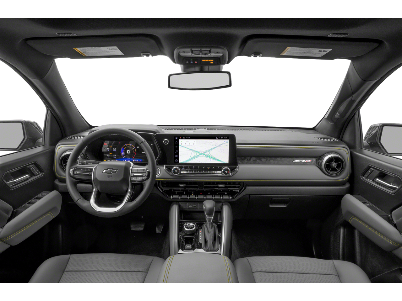 Preferred Equipment Group 4ZR (Chevy Safety Assist, Electronic Automatic Cruise Control, Following Distance Indicator, Forward Collision Alert, IntelliBeam Automatic High Beam On/Off, Lane Keep Assist w/Lane Departure Warning, Rear-Window Electric Defogger, Automatic Emergency Braking, and Front Pedestrian & Bicyclist Braking), Safety Package (Blind Zone Steering Assist w/Trailering, Rear Cross Traffic Braking, and Rear Park Assist), Technology Package (Adaptive Cruise Control, HD Surround Vision, and Rear Pedestrian Alert), ZR2 Convenience Package III (Driver & Front Passenger Ventilated Seats, Driver Memory Settings, Driver Seatback Map Pocket, Heated Steering Wheel, Perforated Leather-Appointed Seat Trim, Rear Center Armrest, and Wireless Charging), ZR2 Off-Road Package, 6-Speaker Audio System Feature, 8-Way Power Driver Seat Adjuster, Alloy wheels, Apple CarPlay/Android Auto, Auto High-beam Headlights, Auto-dimming Rear-View mirror, Front fog lights, Heated door mirrors, Heated Driver & Front Passenger Seats, Illuminated entry, Navigation System, Outside temperature display, Power door mirrors, Power Driver Lumbar Control Seat Adjuster, Power driver seat, Power Sliding Glass w/Manual Shade Sunroof, Radio: 11.3 Diagonal Advanced Color LCD Display, SiriusXM Radio, Steering Wheel Mounted Audio Controls, Steering wheel mounted audio controls, Telescoping steering wheel, Tilt steering wheel, Wireless Phone Projection, 3.42 Rear Axle Ratio, 4-Way Manual Passenger Seat Adjuster, 4-Wheel Disc Brakes, 6 Speakers, ABS brakes, Air Conditioning, AM/FM radio: SiriusXM, Automatic temperature control, Brake assist, Cloth/Evotex Seat Trim, Compass, Delay-off headlights, Driver door bin, Driver vanity mirror, Dual front impact airbags, Dual front side impact airbags, Electronic Stability Control, Fr