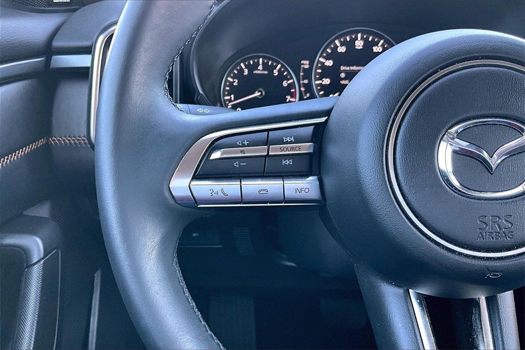 Cargo Package (Cargo Blocks and Cargo Net), 20 x 8J Aluminum Alloy Wheels, AppLink/Apple CarPlay and Android Auto, Auto High-beam Headlights, Auto-dimming Rear-View mirror, Automatic temperature control, Fully automatic headlights, Garage door transmitter: HomeLink, Heads-Up Display, Heated & Ventilated Front Bucket Seats, Heated door mirrors, Illuminated entry, Leather Shift Knob, Leather steering wheel, Memory seat, Outside temperature display, Power door mirrors, Power driver seat, Power Liftgate, Power moonroof, Radio: AM/FM/HD Audio System, Rain sensing wipers, Remote keyless entry, Silver Cross Bars, Soul Red Crystal Metallic Paint Charge, Speed-sensing steering, Steering wheel mounted audio controls, Telescoping steering wheel, Tilt steering wheel, Turn signal indicator mirrors, 12 Speakers, 4-Wheel Disc Brakes, 4.367 Axle Ratio, ABS brakes, Air Conditioning, Alloy wheels, AM/FM radio: SiriusXM, Brake assist, Bumpers: body-color, Carpet Cargo Mat, Delay-off headlights, Driver door bin, Driver vanity mirror, Dual front impact airbags, Dual front side impact airbags, Electronic Stability Control, Emergency communication system: MAZDA CONNECT, Exterior Parking Camera Rear, Front anti-roll bar, Front Bucket Seats, Front Center Armrest, Front dual zone A/C, Front reading lights, Front wheel independent suspension, Heated front seats, Knee airbag, Leather Seat Trim, Low tire pressure warning, Occupant sensing airbag, Overhead airbag, Overhead console, Panic alarm, Passenger door bin, Passenger vanity mirror, Power passenger seat, Power steering, Power windows, Radio data system, Rear seat center armrest, Rear window defroster, Rear window wiper, Speed control, Split folding rear seat, Spoiler, Tachometer, Traction control, Trip comp
