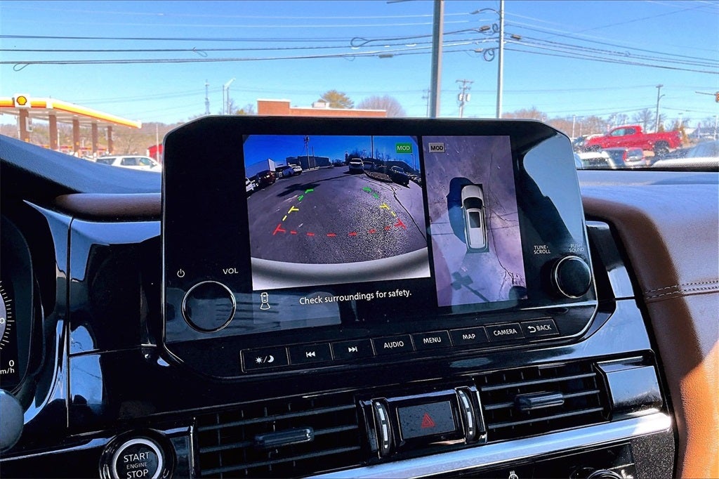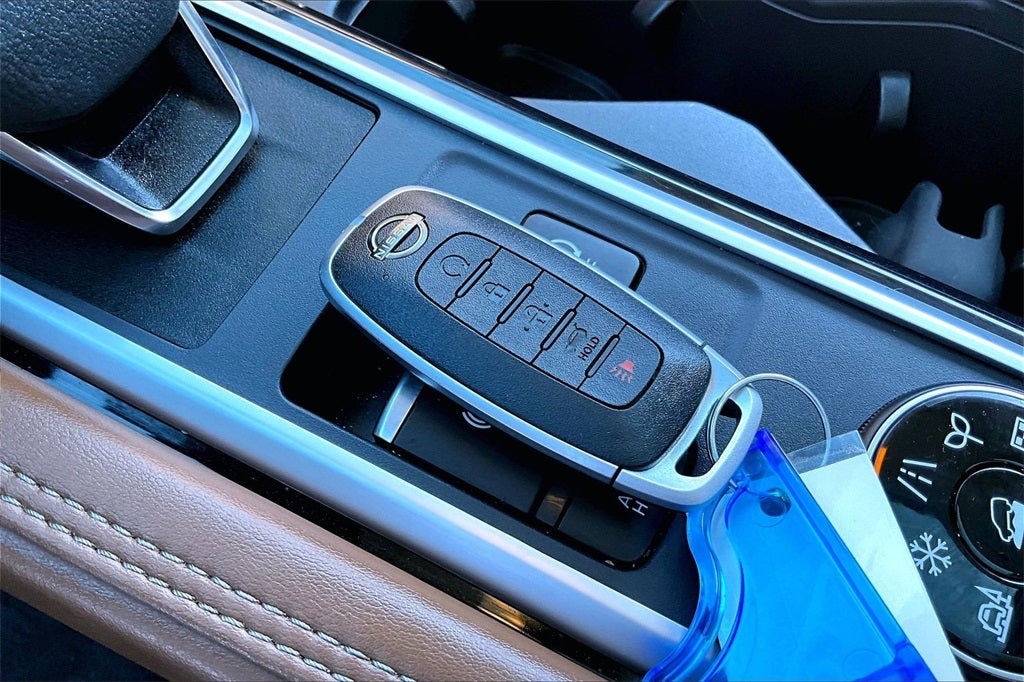 Cargo Package (Cargo Area Protector, Cargo Net, and First Aid Kit), 13 Speakers, 3rd row seats: bench, Alloy wheels, Auto High-beam Headlights, Auto tilt-away steering wheel, Auto-dimming Rear-View mirror, Bench Seat Carpeted Floor Mats (Set of 4), Black Splash Guards (Set of 4), Bose Premium Audio System, Cross Bars, Delay-off headlights, Exterior Parking Camera Rear, Fully automatic headlights, Garage door transmitter: HomeLink, Heads-Up Display, Heated & Cooled Front Bucket Seats, Heated door mirrors, Heated rear seats, Heated steering wheel, Illuminated entry, Leather steering wheel, Memory seat, Navigation system: NissanConnect with Navigation and Services, Nissan USB Charging Cable Set, NissanConnect featuring Apple CarPlay and Android Auto, NissanConnect w/Navigation & Services, Outside temperature display, Power door mirrors, Power driver seat, Power Liftgate, Power moonroof, Power passenger seat, Power windows, Rain sensing wipers, Rear air conditioning, Rear window defroster, Reclining 3rd row seat, Remote keyless entry, Semi-Aniline Leather-Appointed Seating Surfaces, Speed-Sensitive Wipers, Spoiler, Steering wheel memory, Steering wheel mounted audio controls, Telescoping steering wheel, Tilt steering wheel, Turn signal indicator mirrors, Variably intermittent wipers, Ventilated front seats, 4-Wheel Disc Brakes, ABS brakes, Air Conditioning, AM/FM radio: SiriusXM, Automatic temperature control, Axle Ratio: 4.334, Bodyside moldings, Brake assist, Bumpers: body-color, Driver door bin, Driver vanity mirror, Dual front impact airbags, Dual front side impact airbags, Electronic Stability Control, Emergency communication system, Four wheel independent suspension, Front anti-roll bar, Front Bucket Seats, Front Center Armrest, Front dual zone A/C, Front reading lights, Heated front seats, Knee airbag, Low tire pressure warning, Occupan