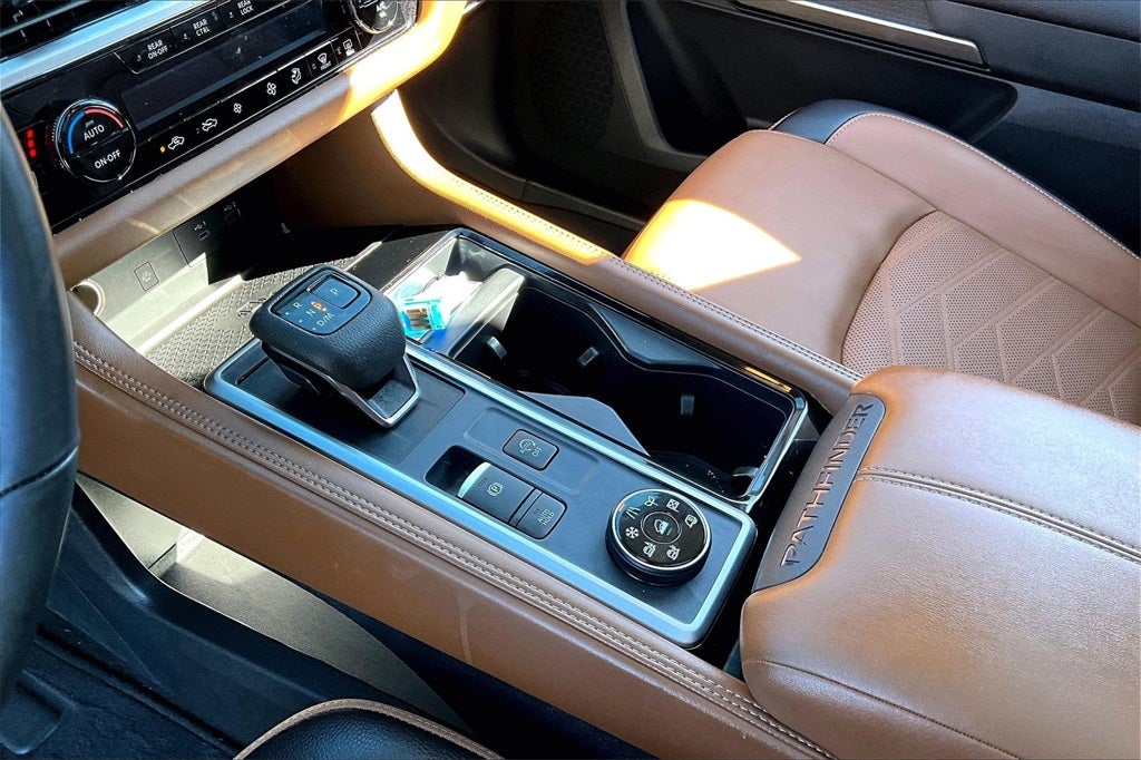 Clean CARFAX. 2024 Nissan Pathfinder Platinum Boulder Gray Pearl Fully serviced, CARFAX One Owner!, 13 Speakers, 3rd row seats: bench, Alloy wheels, Auto High-beam Headlights, Auto tilt-away steering wheel, Auto-dimming Rear-View mirror, Bench Seat Carpeted Floor Mats (Set of 4), Black Splash Guards (Set of 4), Bose Premium Audio System, Cargo Area Protector, Cargo Net, Cargo Package, Cross Bars, Delay-off headlights, Exterior Parking Camera Rear, First Aid Kit, Fully automatic headlights, Garage door transmitter: HomeLink, Heads-Up Display, Heated & Cooled Front Bucket Seats, Heated door mirrors, Heated rear seats, Heated steering wheel, Illuminated entry, Leather steering wheel, Memory seat, Navigation system: NissanConnect with Navigation and Services, Nissan USB Charging Cable Set, NissanConnect featuring Apple CarPlay and Android Auto, NissanConnect w/Navigation & Services, Outside temperature display, Power door mirrors, Power driver seat, Power Liftgate, Power moonroof, Power passenger seat, Power windows, Rain sensing wipers, Rear air conditioning, Rear window defroster, Reclining 3rd row seat, Remote keyless entry, Semi-Aniline Leather-Appointed Seating Surfaces, Speed-Sensitive Wipers, Spoiler, Steering wheel memory, Steering wheel mounted audio controls, Telescoping steering wheel, Tilt steering wheel, Turn signal indicator mirrors, Variably intermittent wipers, Ventilated front seats. 4D Sport Utility 4WD 3.5L V6 DOHC 9-Speed Automatic