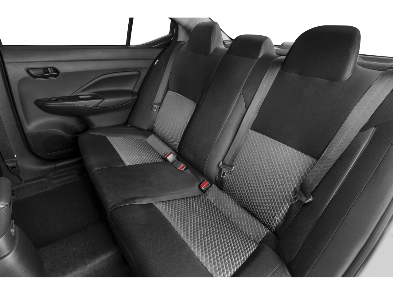 S Plus Package (16 Alloy Wheels, 60/40 Split Rear Seat, and NissanConnect w/Apple CarPlay & Android Auto), Trunk Package (Shopping Bag Hooks and Trunk Net), 15 Steel Wheels w/Full Wheel Covers, 4 Speakers, ABS brakes, Air Conditioning, AM/FM radio, Auto High-beam Headlights, Brake assist, Bumpers: body-color, Carpeted Floor Mats, Cloth Seat Trim, Driver door bin, Driver vanity mirror, Dual front impact airbags, Dual front side impact airbags, Electronic Stability Control, Front anti-roll bar, Front Bucket Seats, Front reading lights, Front wheel independent suspension, Fully automatic headlights, Illuminated entry, Knee airbag, Low tire pressure warning, Occupant sensing airbag, Outside temperature display, Overhead airbag, Panic alarm, Passenger door bin, Passenger vanity mirror, Power door mirrors, Power steering, Power windows, Radio data system, Radio: AM/FM Audio System, Rear Parking Sensors, Rear side impact airbag, Rear window defroster, Speed control, Splash Guards, Steering wheel mounted audio controls, Tachometer, Telescoping steering wheel, Tilt steering wheel, Traction control, Trip computer, and Variably intermittent wipers.