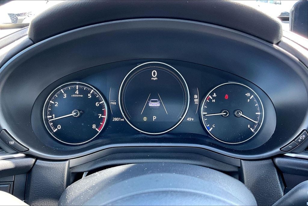 4-Wheel Disc Brakes, 6 Speakers, ABS brakes, Air Conditioning, Alloy wheels, AM/FM radio, AppLink/Apple CarPlay and Android Auto, Auto High-beam Headlights, Automatic temperature control, Brake assist, Bumpers: body-color, Cargo Tray, Compass, Delay-off headlights, Driver door bin, Driver vanity mirror, Dual front impact airbags, Dual front side impact airbags, Electronic Stability Control, Emergency communication system: Mazda Connected Services (3-year trial subscription included), Exterior Parking Camera Rear, Front anti-roll bar, Front Bucket Seats, Front Center Armrest, Front dual zone A/C, Front reading lights, Front wheel independent suspension, Fully automatic headlights, Heated door mirrors, High Wall All-Weather Floor Mats, Illuminated entry, Knee airbag, Leather Shift Knob, Leather steering wheel, Leatherette Seat Trim, Low tire pressure warning, MAZDA CONNECT Infotainment System, Occupant sensing airbag, Outside temperature display, Overhead airbag, Overhead console, Panic alarm, Passenger door bin, Passenger vanity mirror, Power door mirrors, Power steering, Power windows, Radio data system, Radio: AM/FM Audio System, Rain sensing wipers, Rear seat center armrest, Rear side impact airbag, Rear window defroster, Rear window wiper, Remote keyless entry, Soul Red Crystal Metallic Paint Charge, Speed control, Speed-sensing steering, Split folding rear seat, Spoiler, Steering wheel mounted audio controls, Tachometer, Telescoping steering wheel, Tilt steering wheel, Traction control, Trip computer, Turn signal indicator mirrors, Variably intermittent wipers, and Wheels: 18 x 7J Aluminum Alloy.