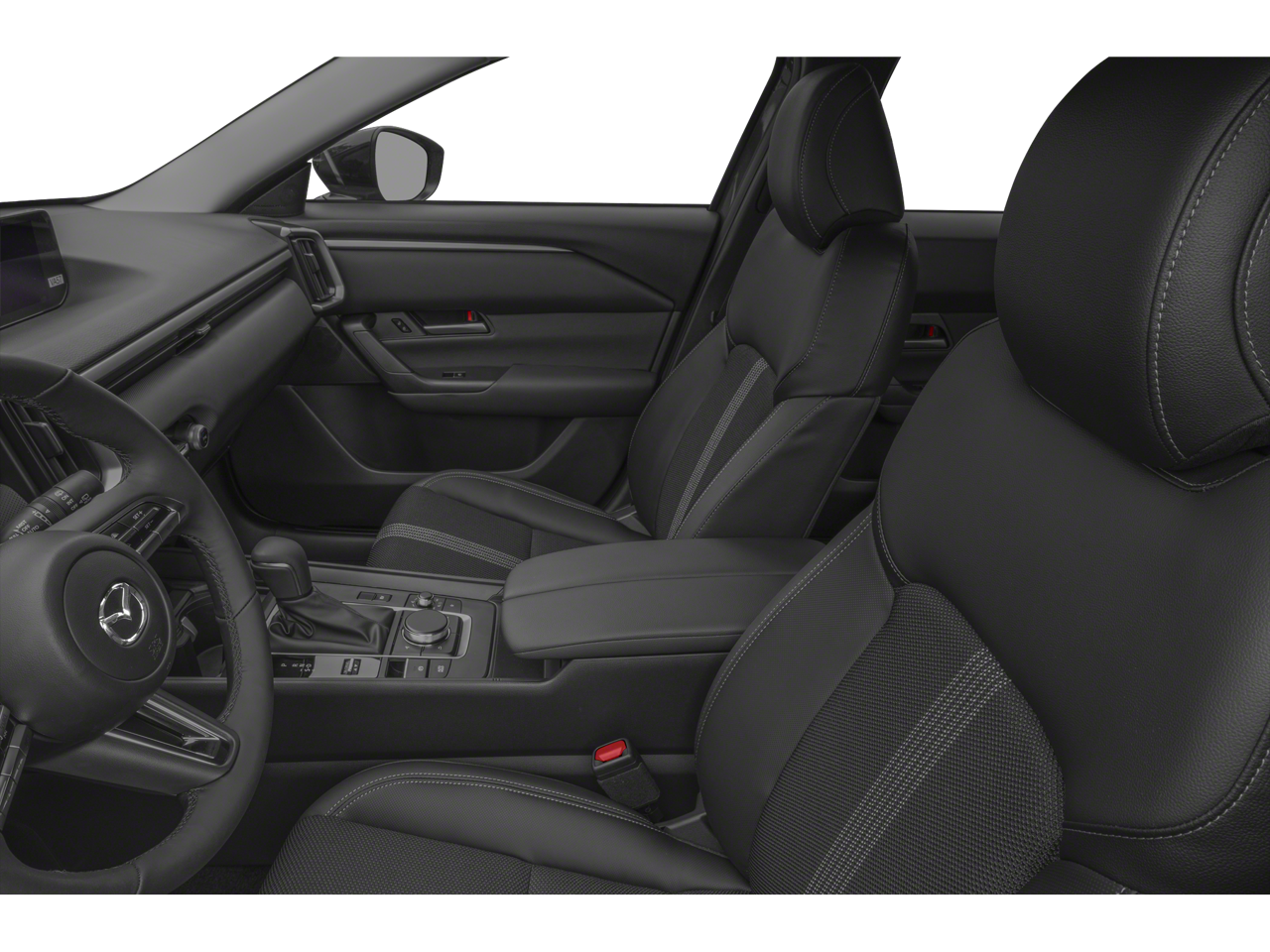 Weather Package, 4-Wheel Disc Brakes, 8 Speakers, ABS brakes, Air Conditioning, Alloy wheels, AM/FM radio, AppLink/Apple CarPlay and Android Auto, Auto High-beam Headlights, Automatic temperature control, Brake assist, Bumpers: body-color, Delay-off headlights, Driver door bin, Driver vanity mirror, Dual front impact airbags, Dual front side impact airbags, Electronic Stability Control, Emergency communication system: MAZDA CONNECT, Exterior Parking Camera Rear, Front anti-roll bar, Front Bucket Seats, Front Center Armrest, Front dual zone A/C, Front reading lights, Front wheel independent suspension, Fully automatic headlights, Half Leatherette Seat Trim, Heated door mirrors, Heated Front Bucket Seats, Heated front seats, Illuminated entry, Knee airbag, Leather Shift Knob, Leather steering wheel, Low tire pressure warning, Occupant sensing airbag, Outside temperature display, Overhead airbag, Overhead console, Panic alarm, Passenger door bin, Passenger vanity mirror, Power door mirrors, Power driver seat, Power Liftgate, Power steering, Power windows, Radio data system, Radio: AM/FM/HD 8-Speaker Audio Sound System, Rain sensing wipers, Rear seat center armrest, Rear window defroster, Rear window wiper, Remote keyless entry, Speed control, Speed-sensing steering, Split folding rear seat, Spoiler, Steering wheel mounted audio controls, Tachometer, Telescoping steering wheel, Tilt steering wheel, Traction control, Trip computer, Turn signal indicator mirrors, Variably intermittent wipers, and Wheels: 17 x 7J Aluminum Alloy Black Metallic Finish.